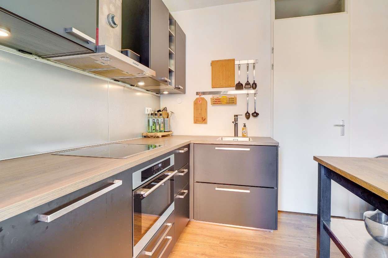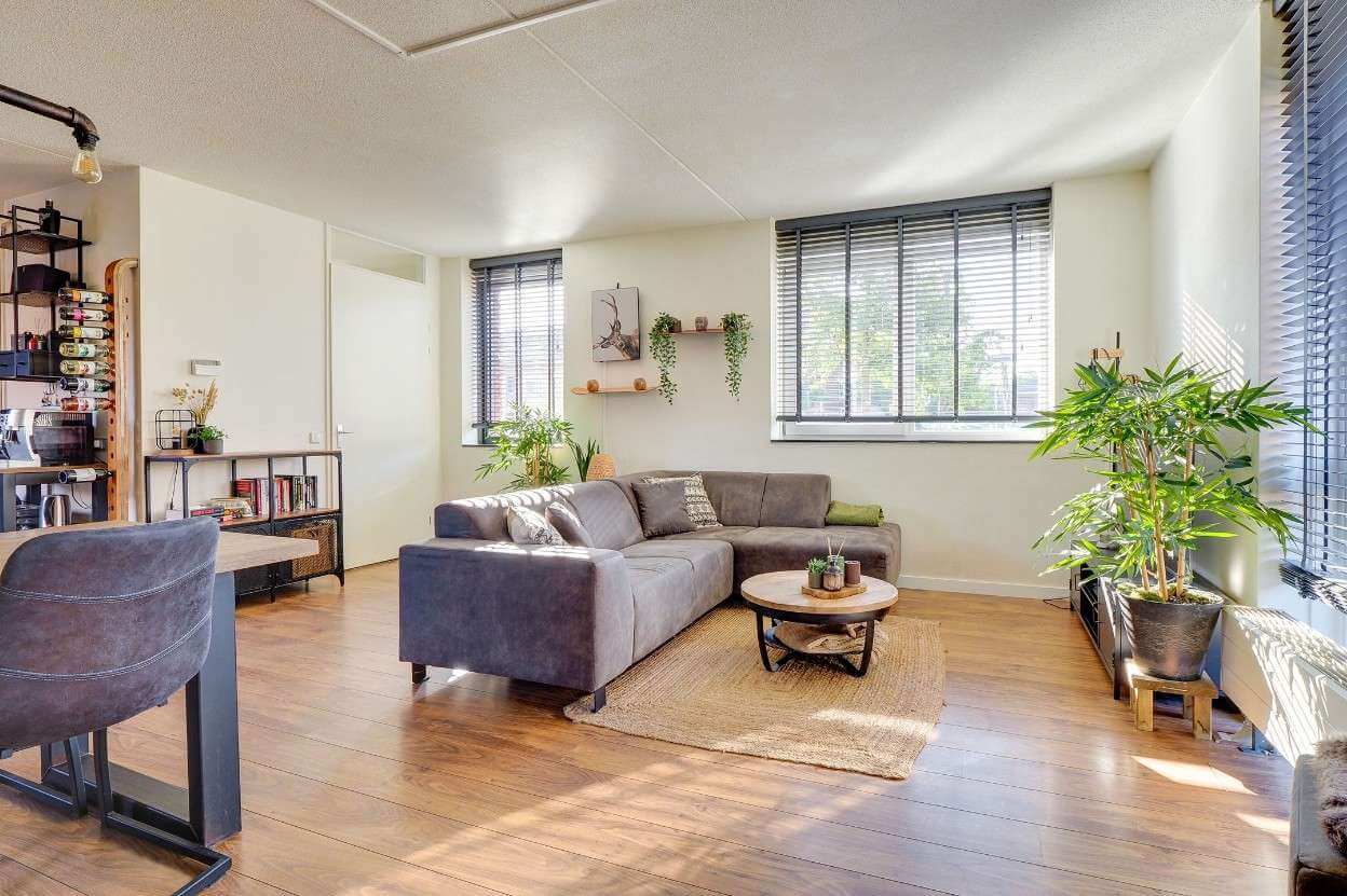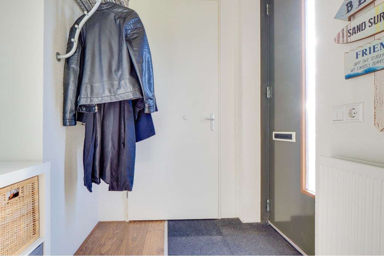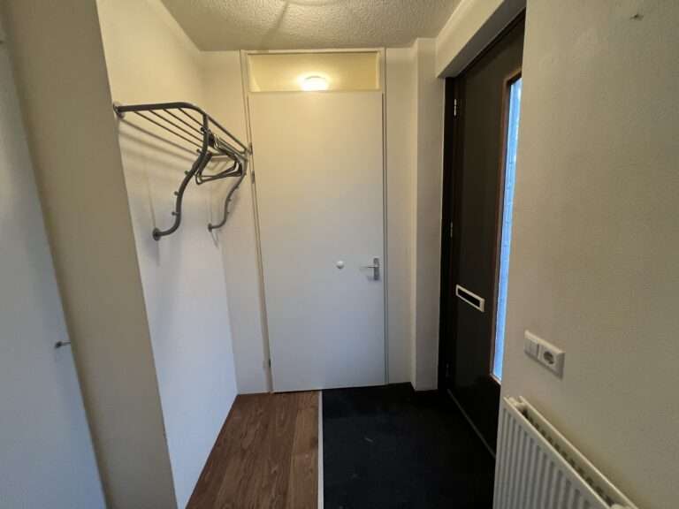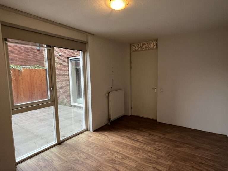 De voordeur geeft toegang tot de entree/hal (met meterkast), garderobe, toilet en deur naar de ruime woonkamer. De woonkamer ligt aan de voorzijde. Dankzij de grote ramen is het lekker licht. De strak gestucte wanden en houten laminaatvloer geven de woonkamer een warme uitstraling. De recent geplaatste keuken is voorzien van nieuwe inbouwapparatuur en helemaal van nu. Vanuit de keuken heb je toegang tot de besloten achtertuin.
