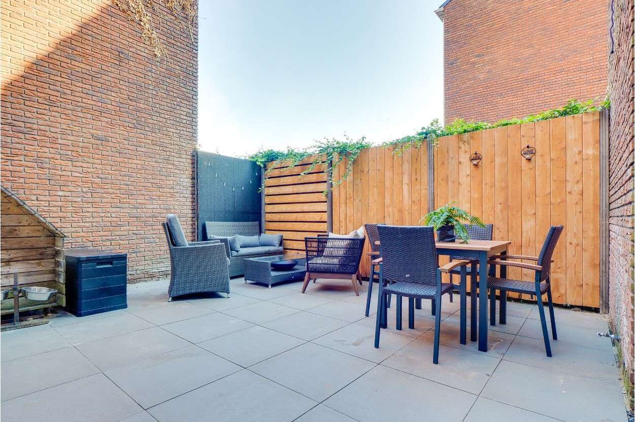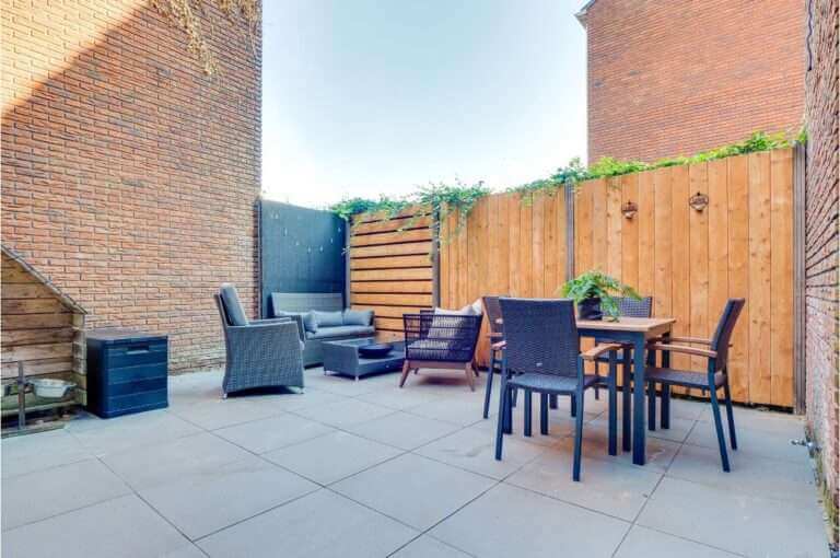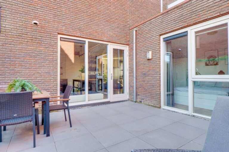 Vanuit de keuken heb je toegang tot de besloten achtertuin met veel privacy. In deze verzorgde tuin met prachtige terrastegels en speelse schutting geniet je van de ochtendzon en namiddagzon.