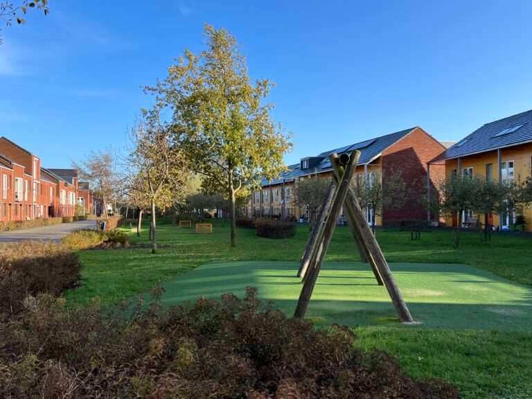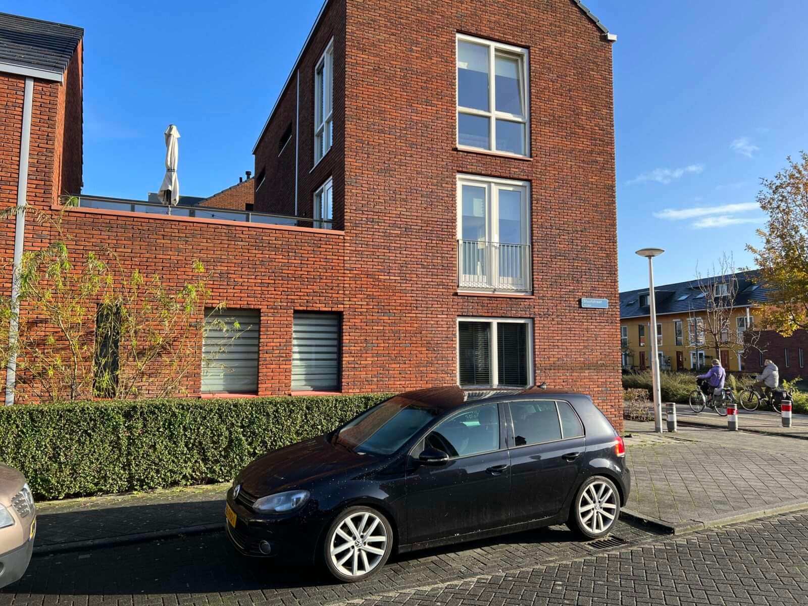 Aan de zijkant van de woning bevindt zich een tuin op het westen omsloten door een groene haag. Aan de voorzijde van de woning (op het zuiden) is tevens ruimte voor een bankje om te genieten van de zon met een vrij uitzicht op het groen en de levendigheid van de wijk ’t Zand.