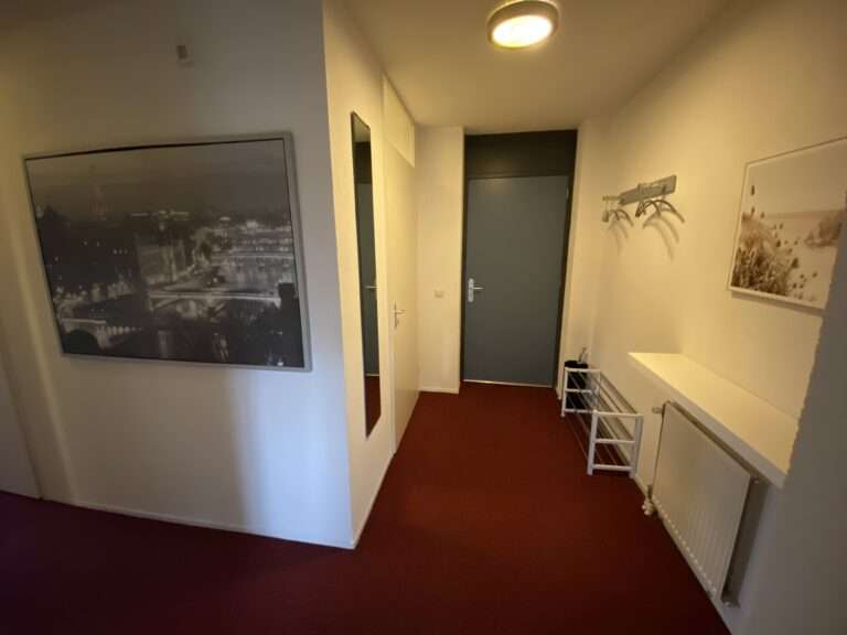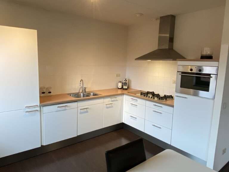 Entree. L-vormige, brede gang met toegang tot alle ruimtes. Ruime en sfeervolle woonkamer, dankzij de hoekligging met veel raampartijen. De open keuken is voorzien van een 5-pits gasfornuis, afzuigkap, oven, koelvriescombinatie en een vaatwasmachine. Een apart gedeelte is ingericht als werkkamer. Nette badkamer voorzien van een wastafelmeubel, een inloopdouche, een ligbad en een designradiator. Ruime was-/stookruimte met wasmachine en wasdroger. Royale slaapkamer met 2 persoons bed en een grote schuifkast. Tweede slaapkamer met 1 persoons bed. Apart toilet.