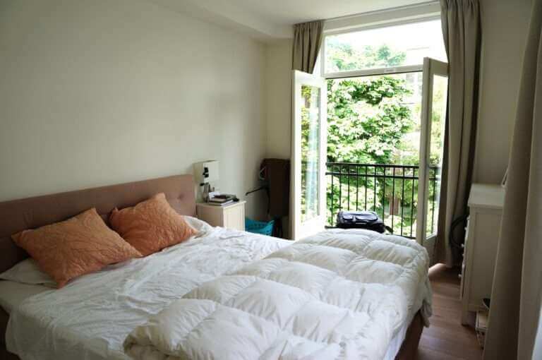 De slaapkamers zijn rustig en stil gelegen en kijken uit op de binnentuinen. Het aangrenzende balkon ligt op het noordwesten en biedt middag- en avondzon.