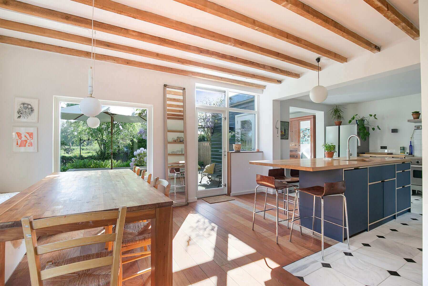 Aangrenzend vind je het eetgedeelte. Aan de voorzijde van de woning tref je een ruime, lichte open woonkamer.