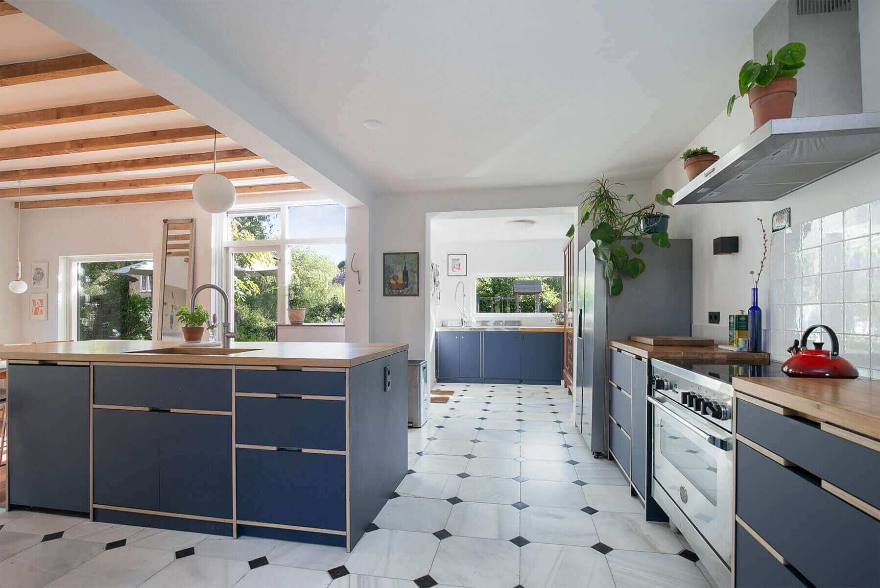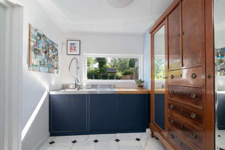 De woning heeft een heerlijke open keuken (van allerlei gemakken voorzien, denk hierbij aan een Quooker, grote oven en Amerikaanse koelkast) met spoeleiland, inclusief bargedeelte. Tevens is er ook een extra (bij)keuken gedeelte met spoelbak, wasmachine en droger.