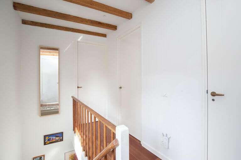 Op de eerste verdieping bevinden zich drie slaapkamers en badkamer met ligbad met douche en wastafelmeubel.