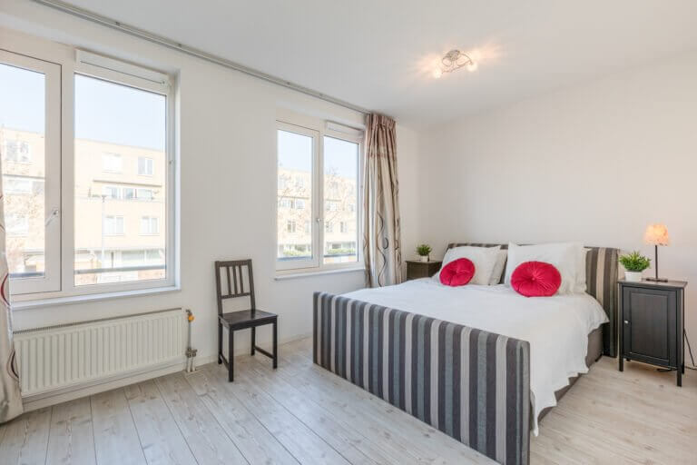 De grootste van de 3 slaapkamers is de master bedroom en is gelegen aan de voorzijde van de woning. Aan de achterzijde van de woning bevinden zich nog 2 slaapkamers waaronder een tweede ruime slaapkamer en een derde wat kleinere slaapkamer.