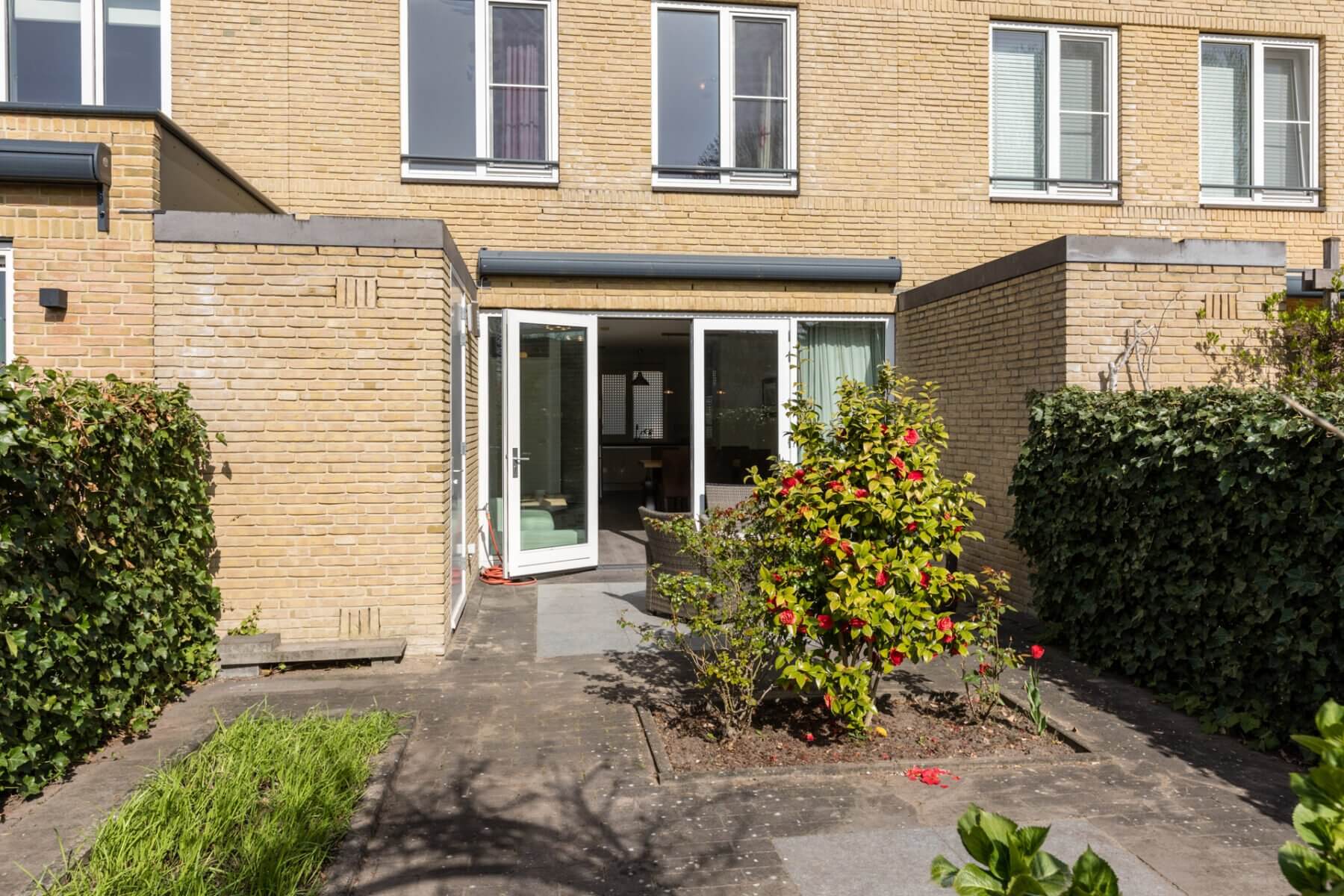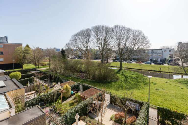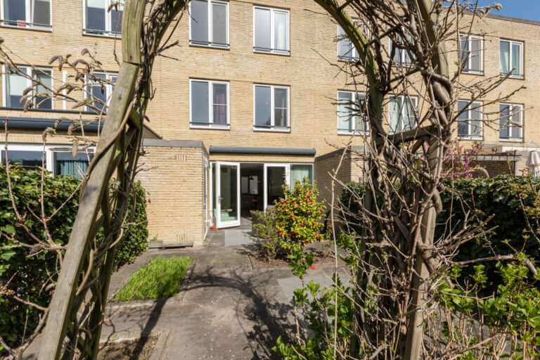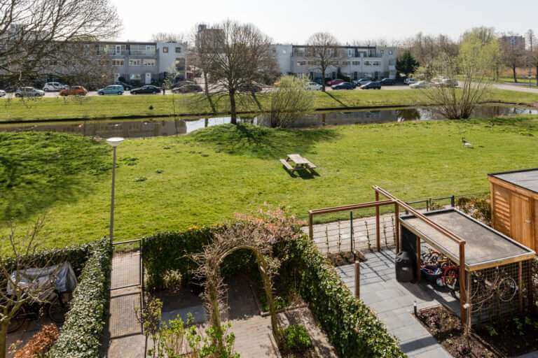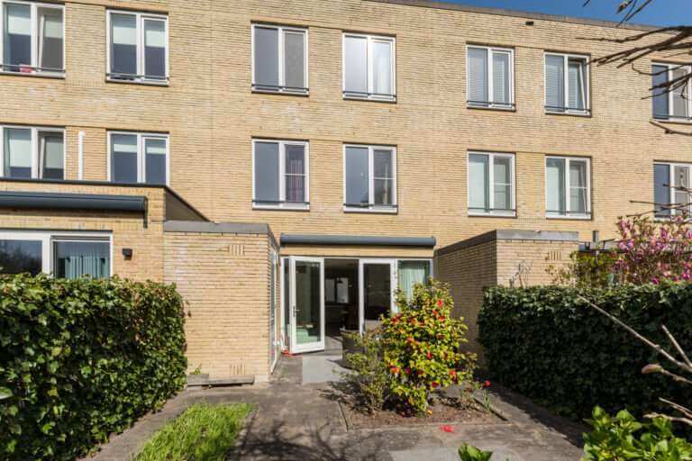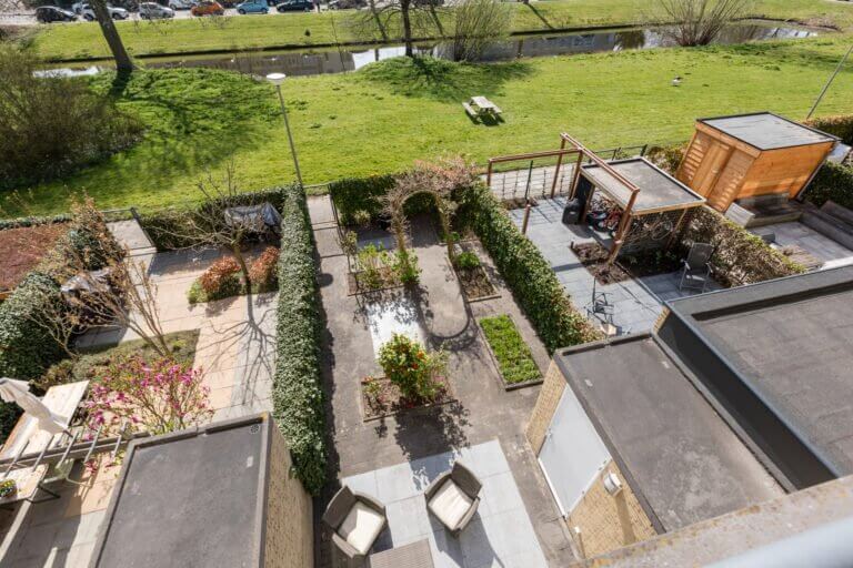 De grote raampartij met schuifpui in de woonkamer maakt de living bijzonder licht en geeft een zeer ruimtelijk gevoel. Via de schuifpui bereikt u de keurig verzorgde, zonnige achtertuin op het Zuiden. De tuin biedt genoeg ruimte voor een gezellige zithoek en is verder ruim voorzien van mooie beplanting.