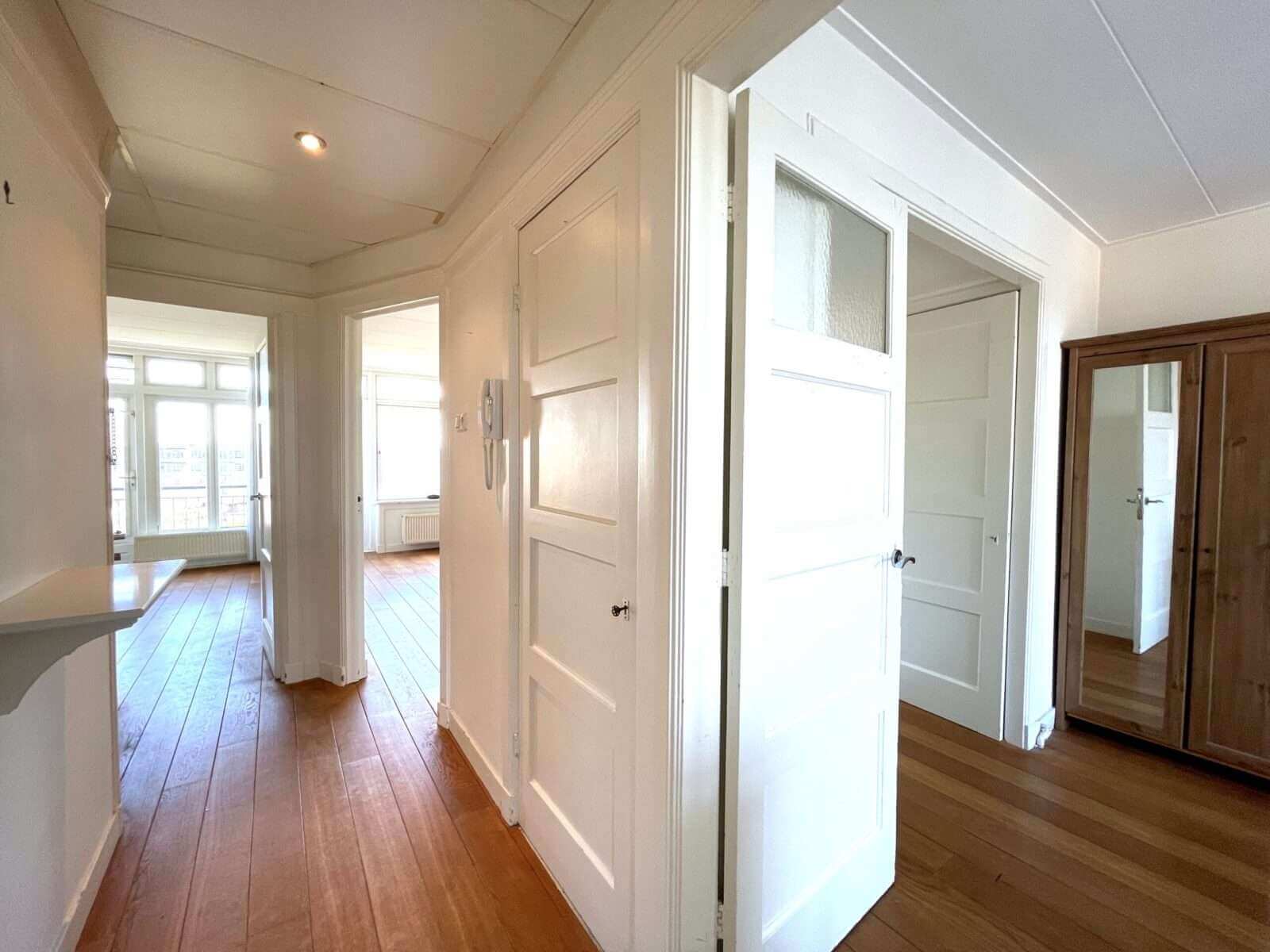 Gemeubileerd 3 kamer (2 slaapkamer) appartement op de bovenste (3e) verdieping met balkon voor en achterzijde.