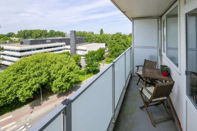 De woning is gelegen op de 6e verdieping, met een prachtig en vrij uitzicht en beschikt over twee royale zonnige balkons.
