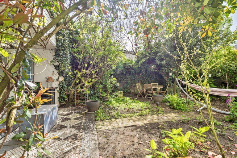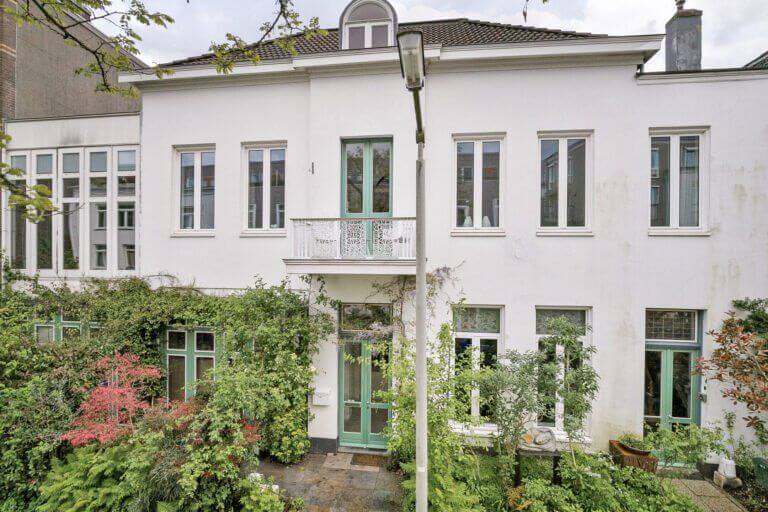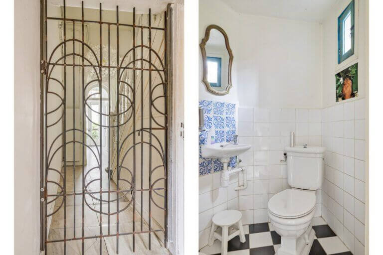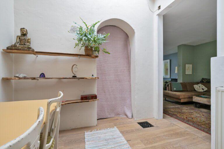 De benedenwoning is via de privé opengewerkte smeedijzeren sierdeur te bereiken.