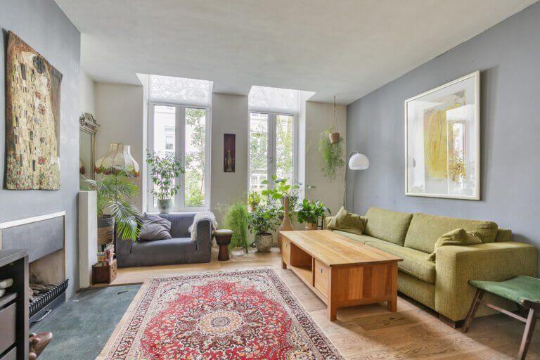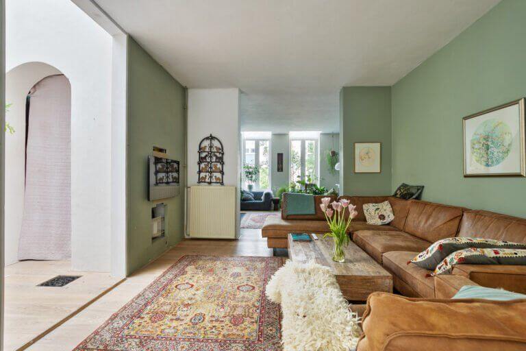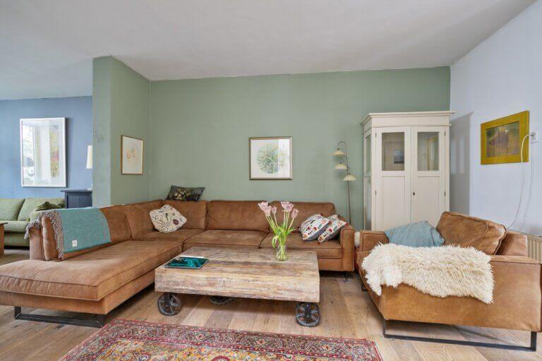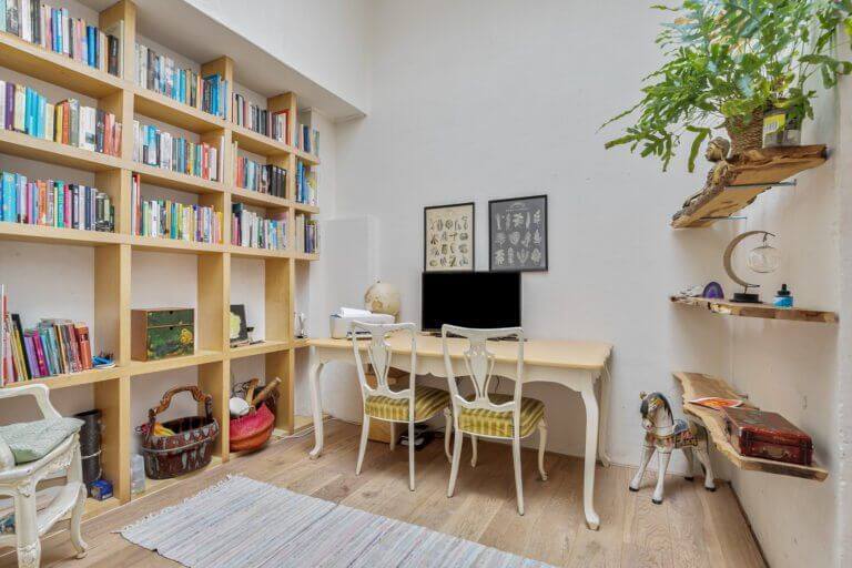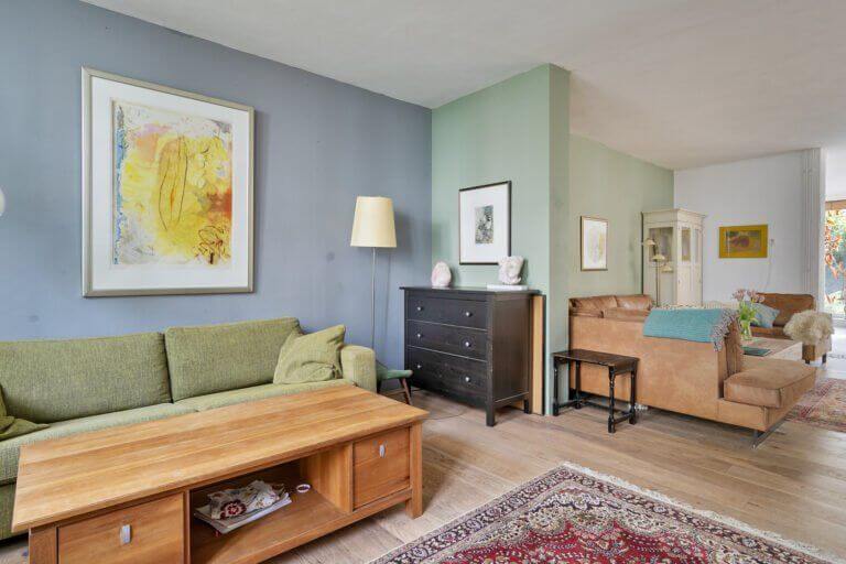 De woonkamer is ruim, daardoor is er een extra hoek gecreëerd voor een fijne werkplek/ leeshoek.