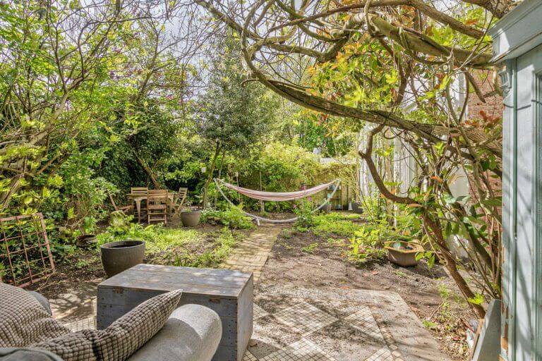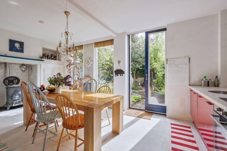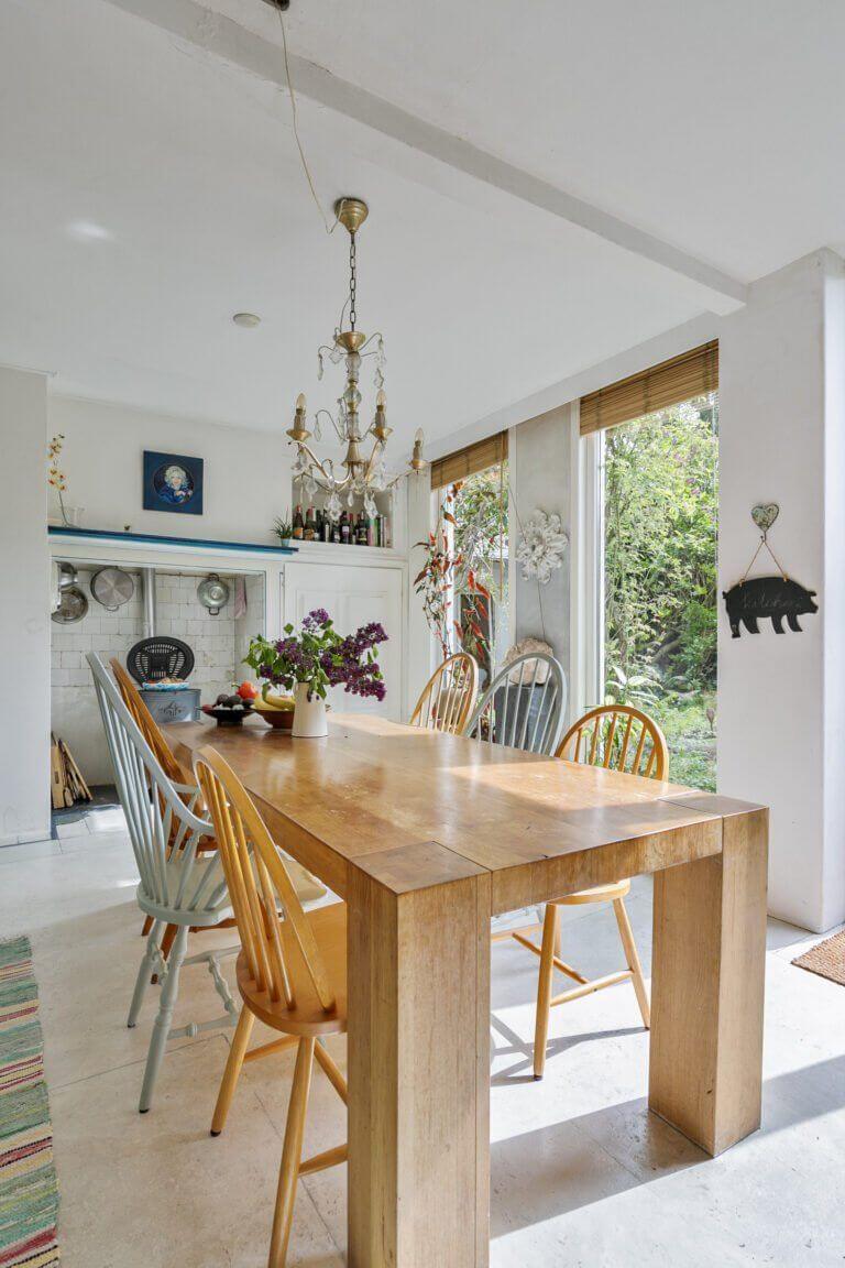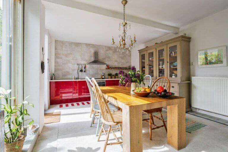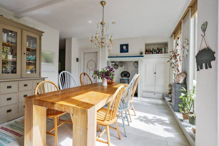Vanuit de hal bereik je het separaat toilet en de gezellige woonkeuken voorzien van grote raampartij en toegang tot de achtertuin.