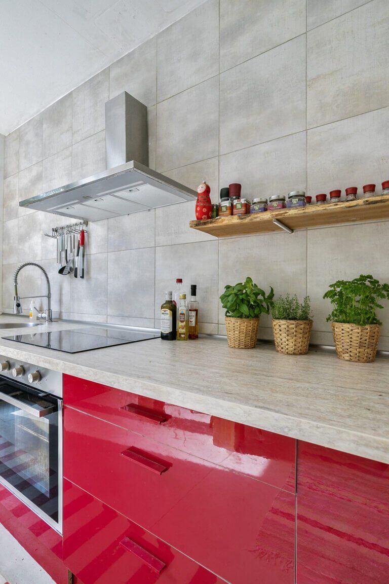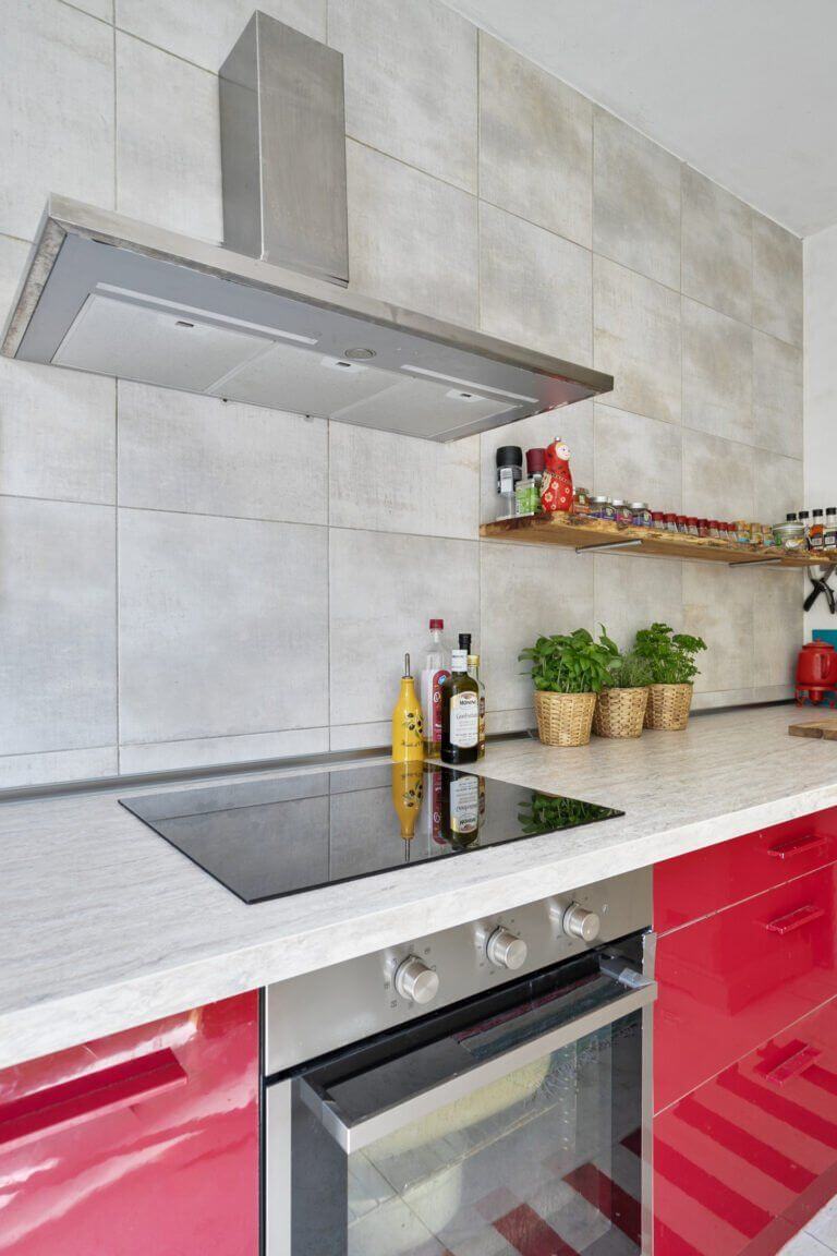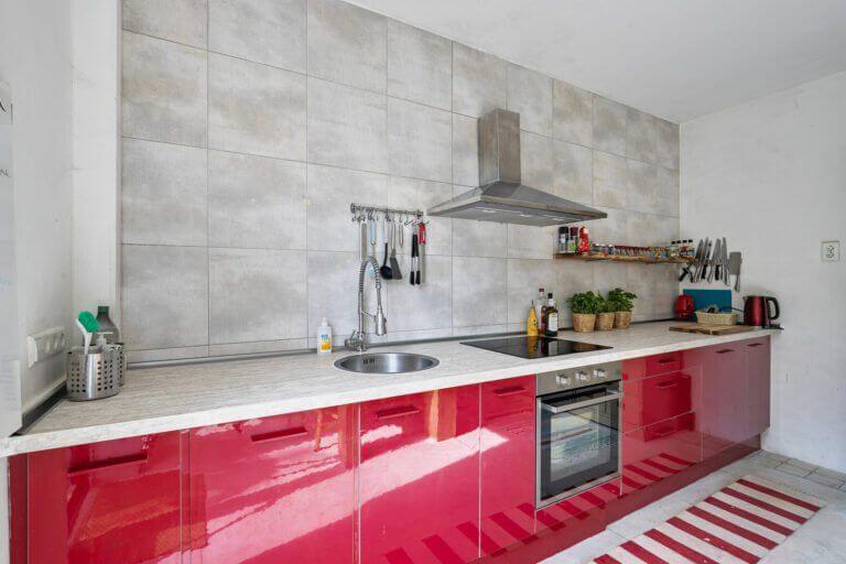 De keuken is voorzien van diverse inbouwapparatuur zoals: koelkast, vaatwasser, magnetron, oven, inductiekookplaat en afzuigkap.