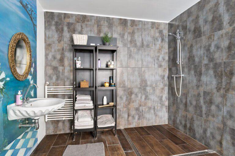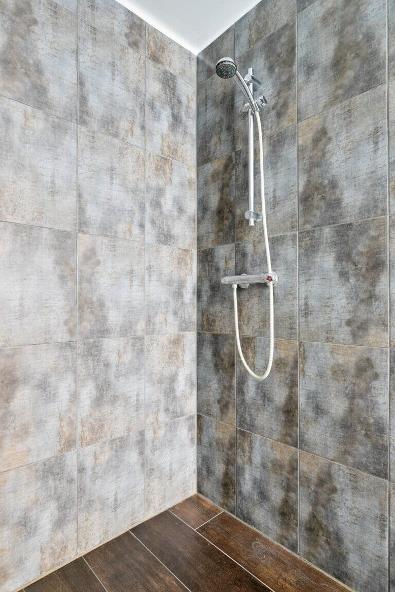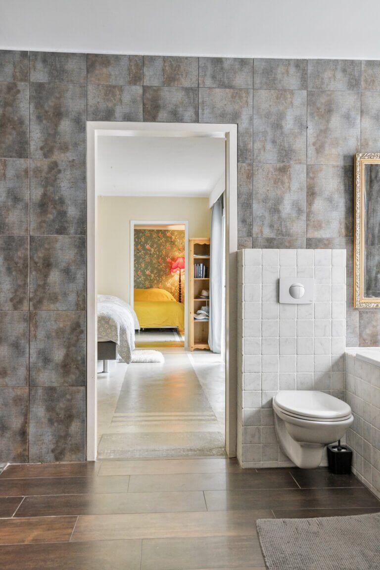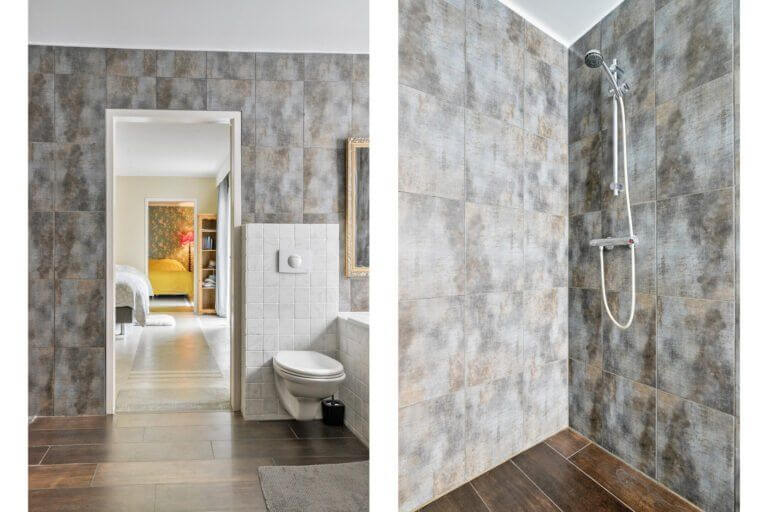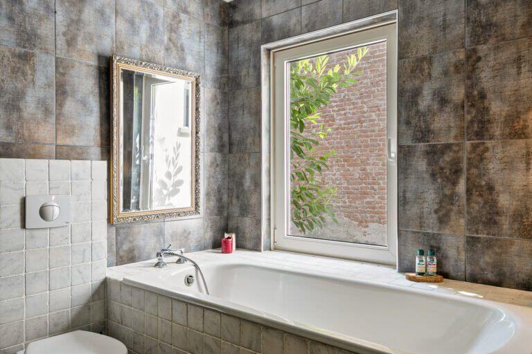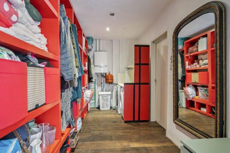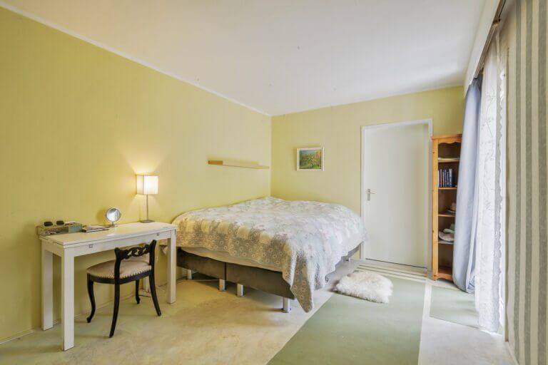 Via de hal kom je in de bergruimte welke voorzien is van grote kastenwand en wasmachine + droger, hier loop je vervolgens door naar de heerlijke relax badkamer met uitzicht op de tuin. De badkamer is voorzien van douche, tweede toilet en ligbad. Vanuit de badkamer bereik je de Masterbedroom, deze kamer grenst tevens aan de tuin.
