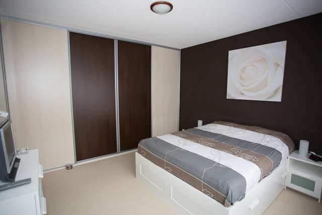 Vanuit de overloop met berging toegang tot 1 grote slaapkamer en een separate wasruimte.
