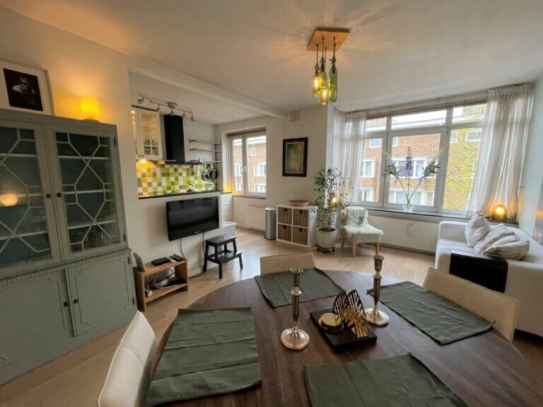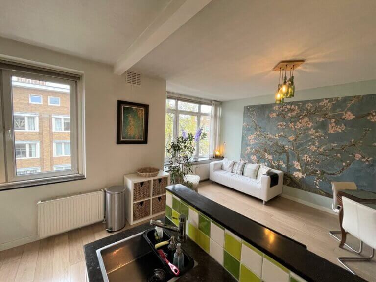 Gelegen op de derde en tevens bovenste verdieping, kun je vanuit dit appartement uitkijken over dit hippe stukje Amsterdam. Het appartement beschikt over drie kamers (2 slaapkamers). Op de vierde verdieping bevinden zich de bergingen.