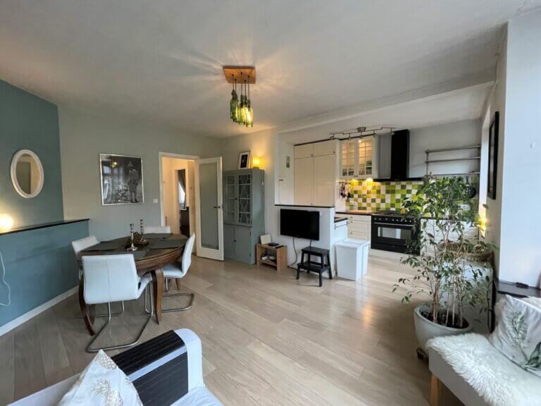 De woning, gelegen in een rustig doodlopend straatje, ligt in het bruisende en steeds populairder wordende Bos & Lommer.