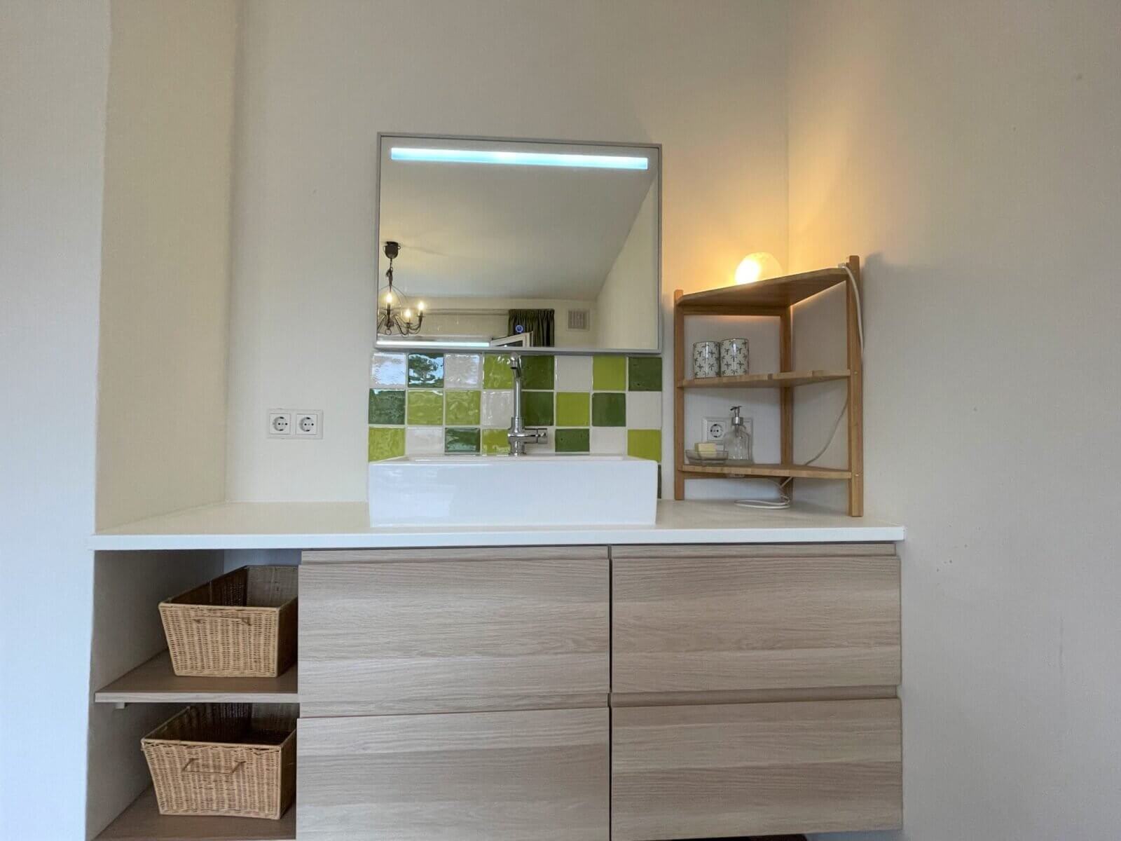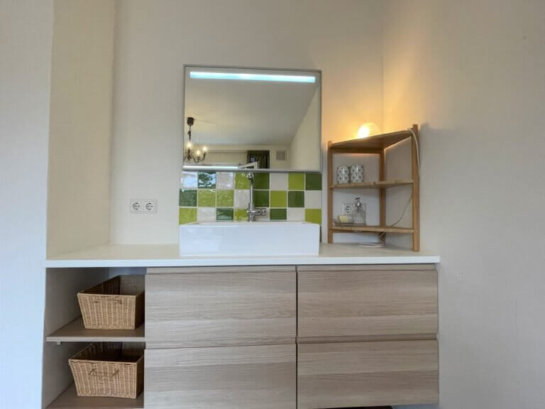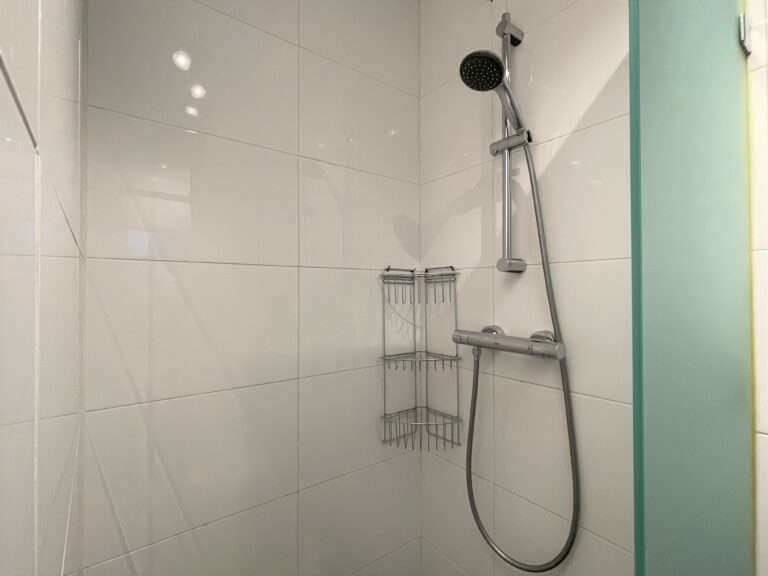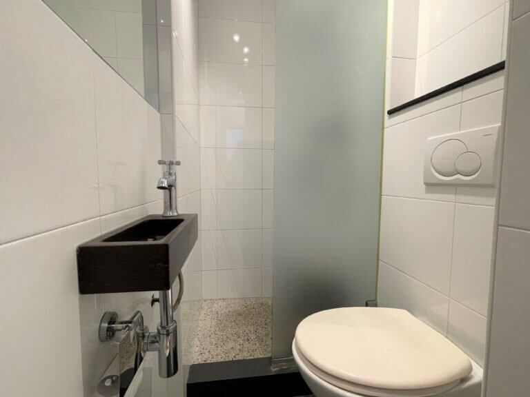 Via de gang kom je in de stijlvol ingerichte ‘master bedroom”, met inbouwkast. In de tweede slaapkamer (of potentiële werkkamer) is er nog meer opbergruimte en wastafel met daarbij wastafelkast. Via deze kamer kun je tevens het privé balkon betreden. In de badkamer vind je de douche, toilet en wastafel.