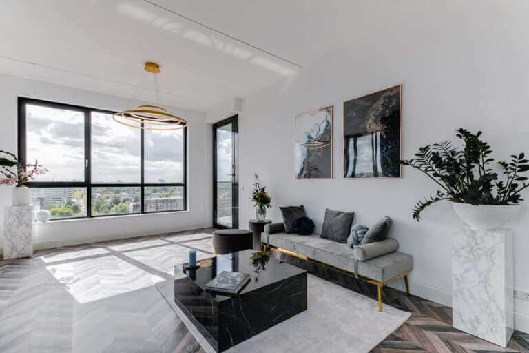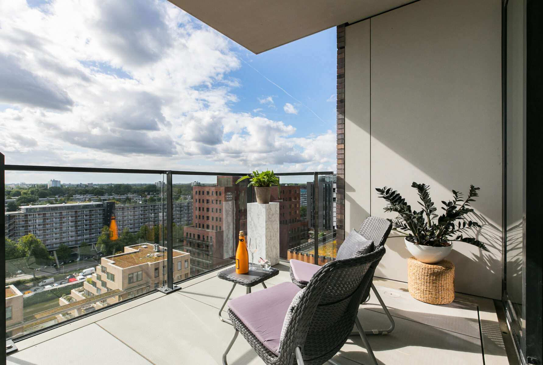Op de 12e verdieping op een toplocatie in het hart van de Zuidas gelegen, indrukwekkend hoek-appartement van ca 80 m² met een balkon op het zuiden!