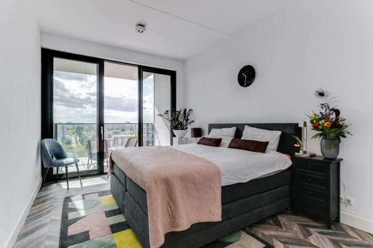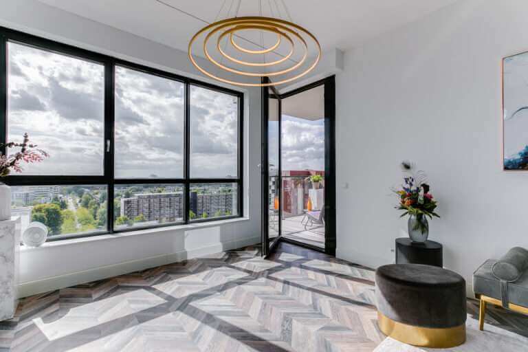 Het loft-appartement bevindt zich op de hoek van het Xavier gebouw op de 12e verdieping en biedt een fantastisch uitzicht over Amsterdam.