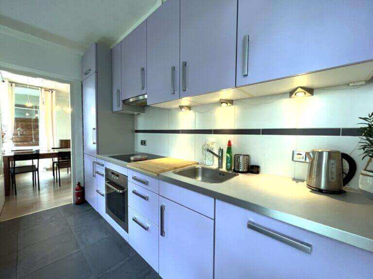 Dit fijne appartement beschikt over een zeer ruime woonkamer met eetgedeelte van 30 m2. De keuken is voorzien van moderne inbouw keukenapparatuur, zoals een vaatwasmachine, koelkast en oven. Door de vele ramen (10 meter aan ramen) – met vrij uitzicht op tuinen en bomen – is dit een lichte woning.