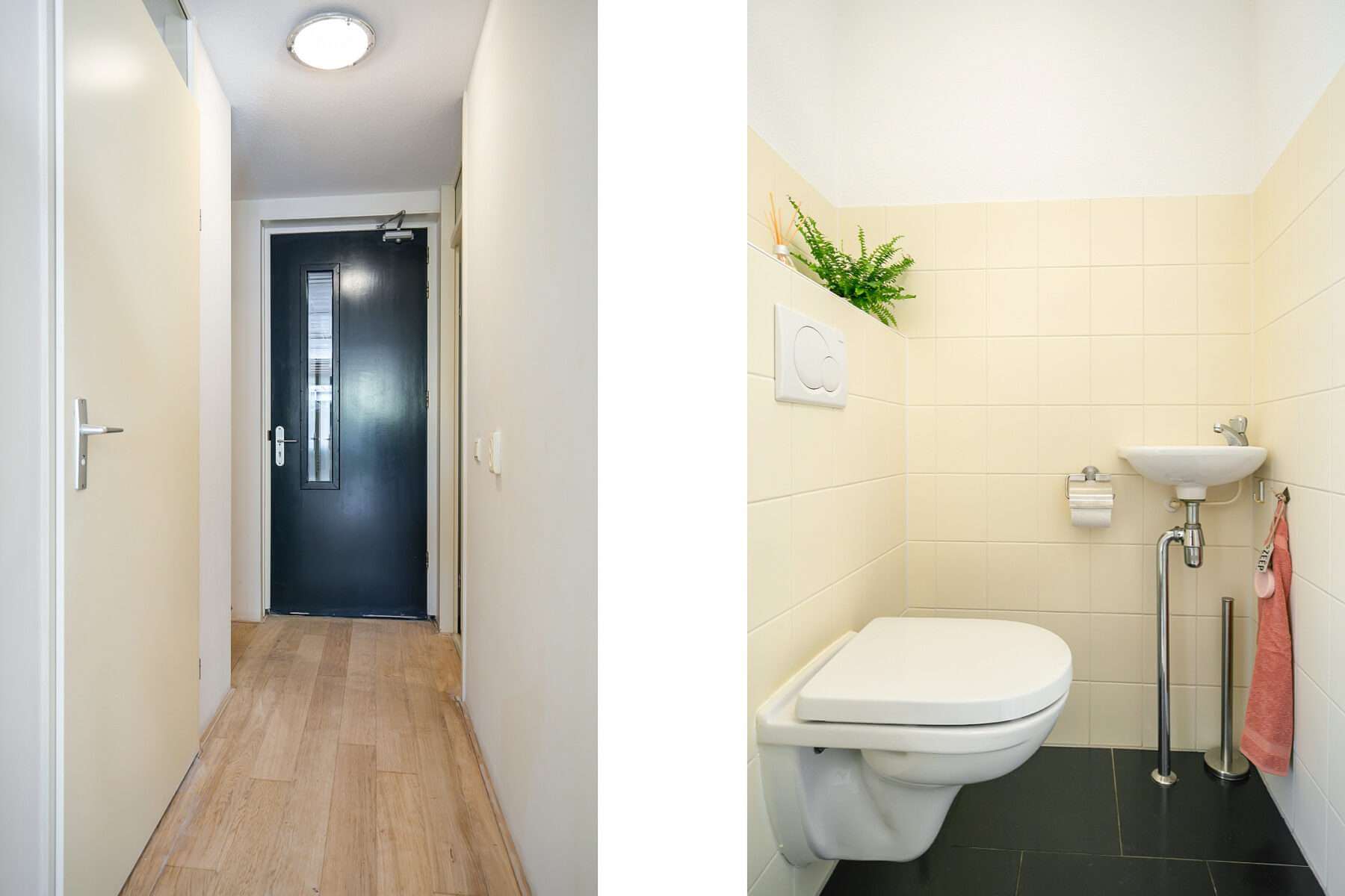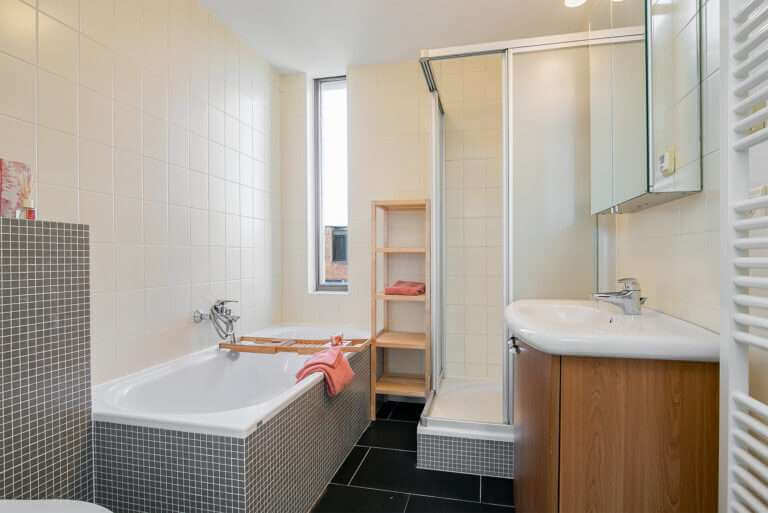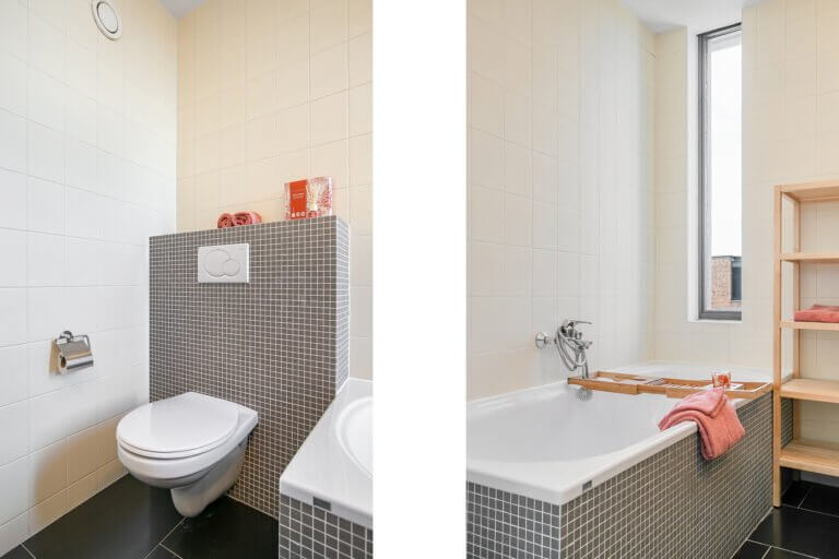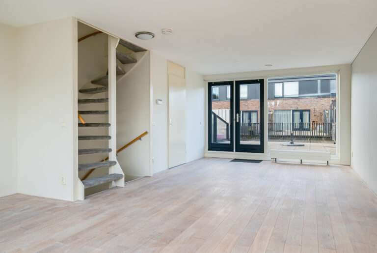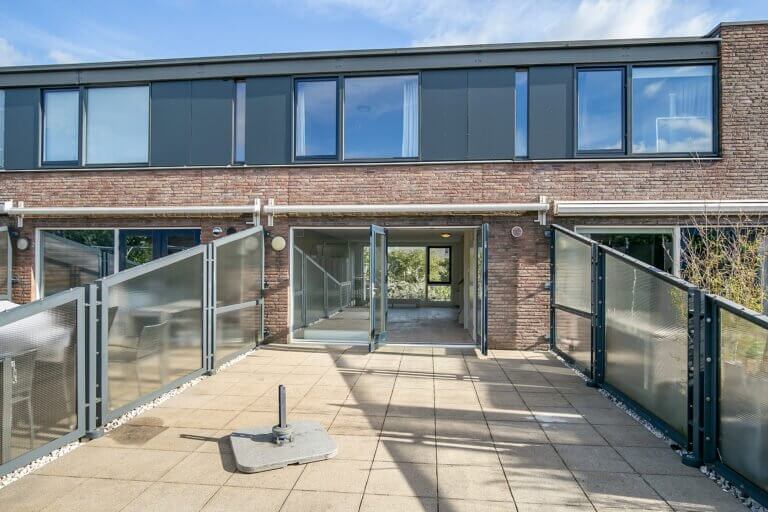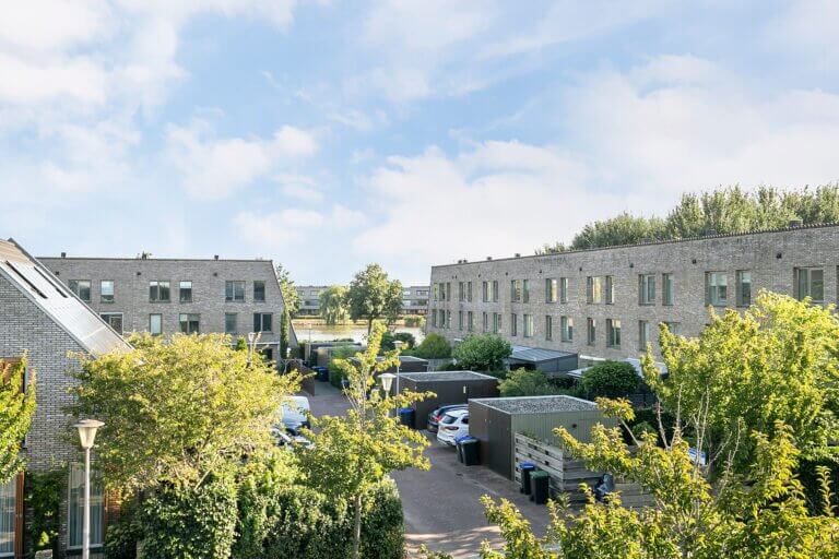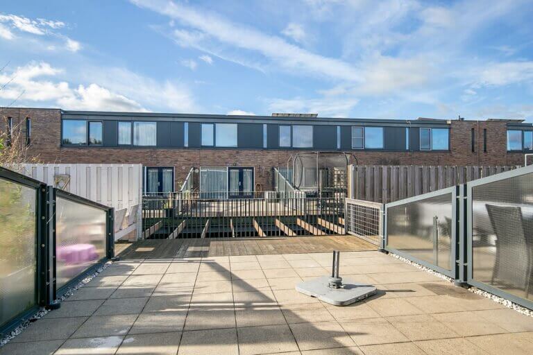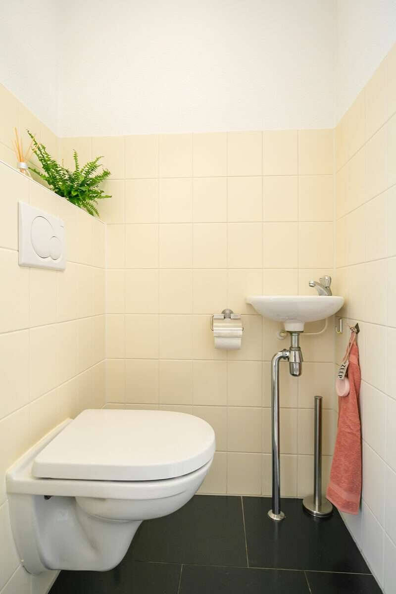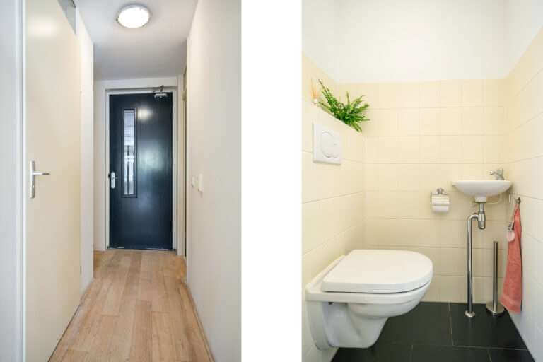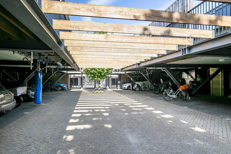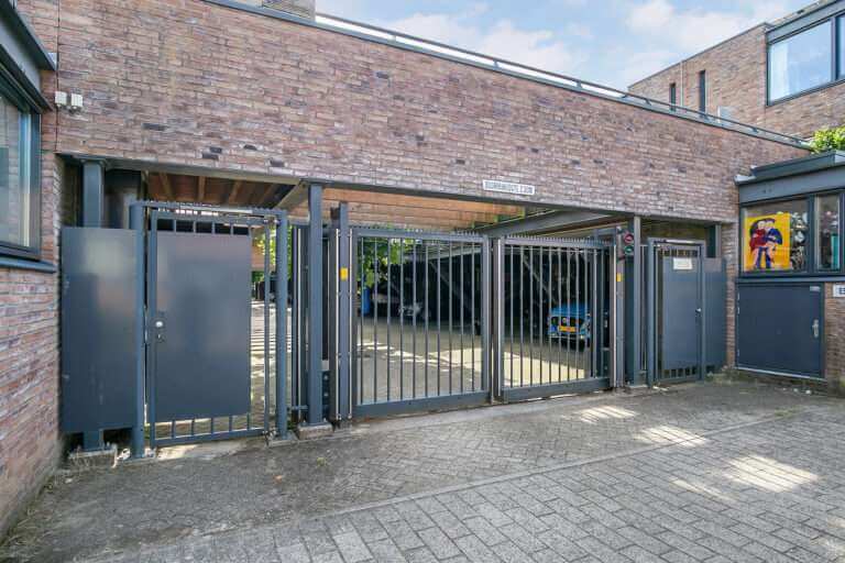 Aan de achterzijde van de woning vindt u de gang met toegang tot de handige wasruimte/ provisieruimte voorzien van wasmachine- en drogeropstelling, een (gasten)toilet met fonteintje, de meterkast en toegang tot de achterzijde met een eigen overdekte parkeerplaats op het afgesloten binnenterrein. Deze parkeerplaats biedt plaats voor 2 auto’s. Voor het binnenterrein is een actieve VvE opgericht met een maandelijkse bijdrage van € 95,-. Zij houden jaarlijks overleg, hebben een MJOP en een reservefonds.