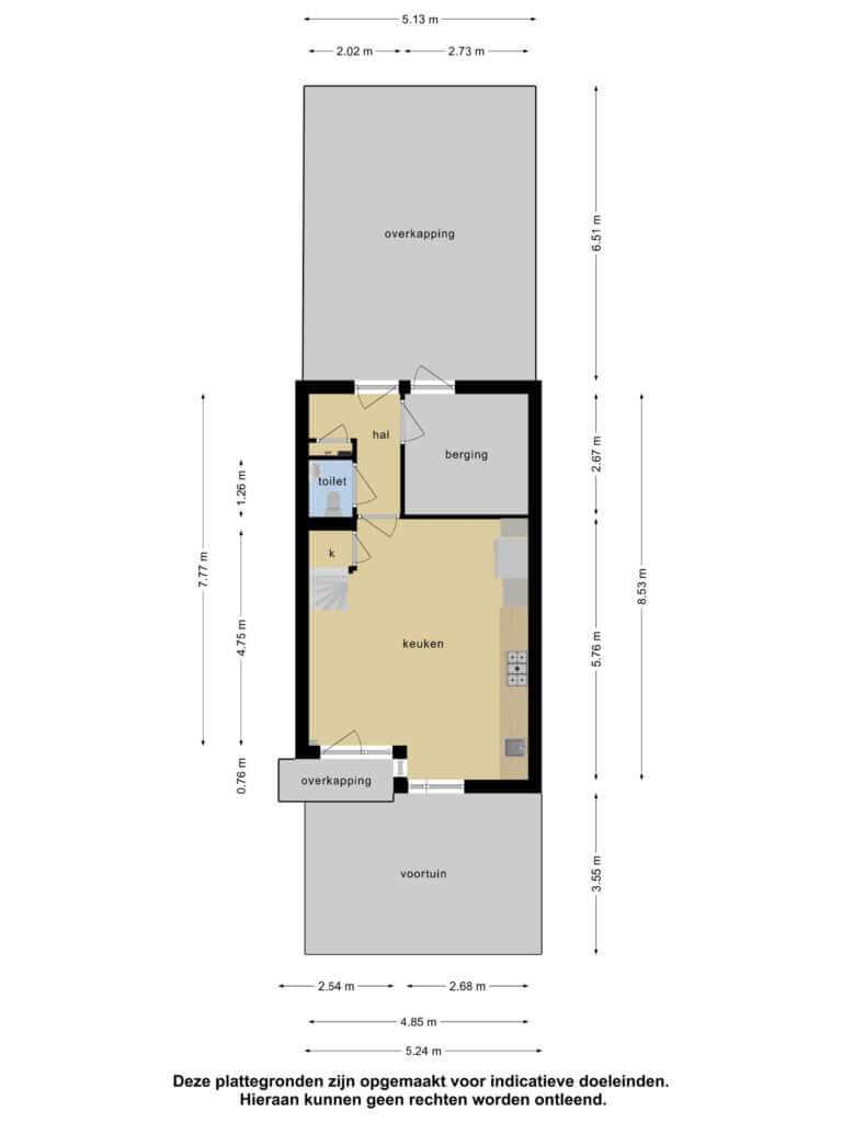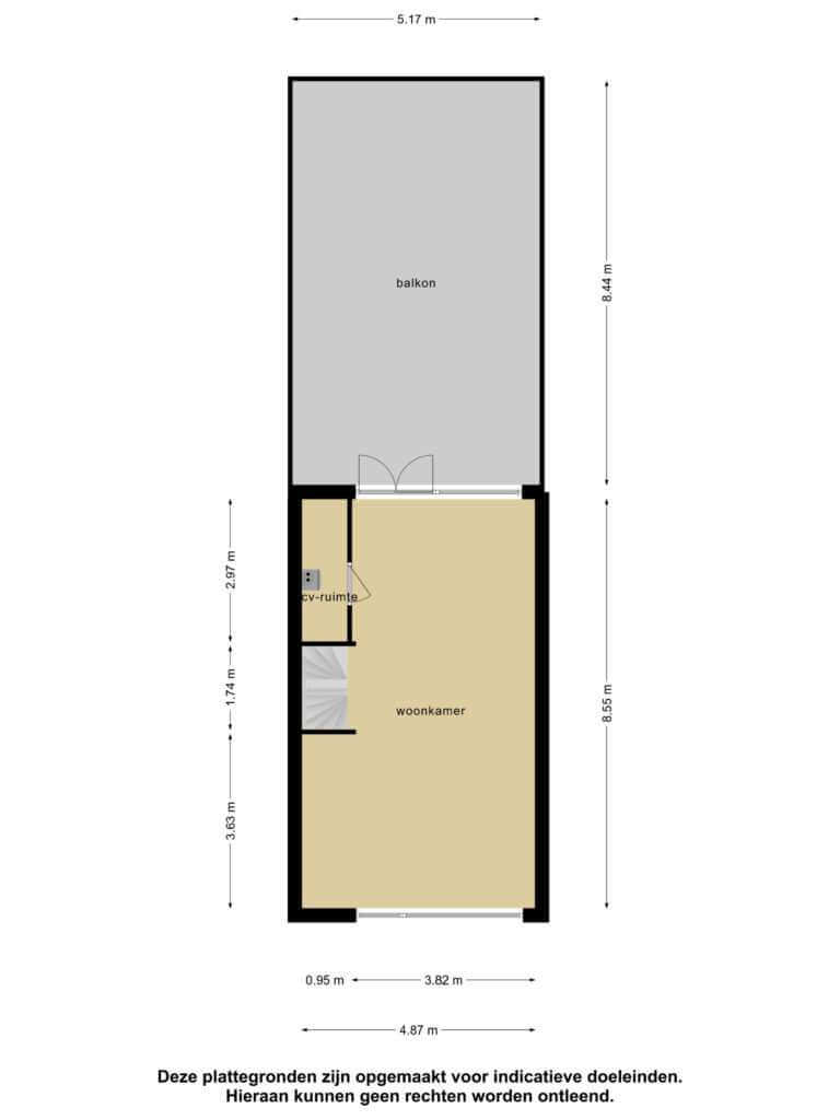 Deze informatie is met de nodige zorgvuldigheid samengesteld. Onzerzijds wordt echter geen enkele aansprakelijkheid aanvaard voor enige onvolledigheid, onjuistheid of anderszins, dan wel de gevolgen daarvan. De meetinstructie is opgesteld aan de hand van de meest recente meetinstructie gebruiksoppervlakte woningen en bruto inhoud woningen, gebaseerd op de NEN 2580. De meetinstructie sluit verschillen in meetuitkomsten niet volledig uit, door bijvoorbeeld interpretatieverschillen, afrondingen of beperkingen bij het uitvoeren van de meting.