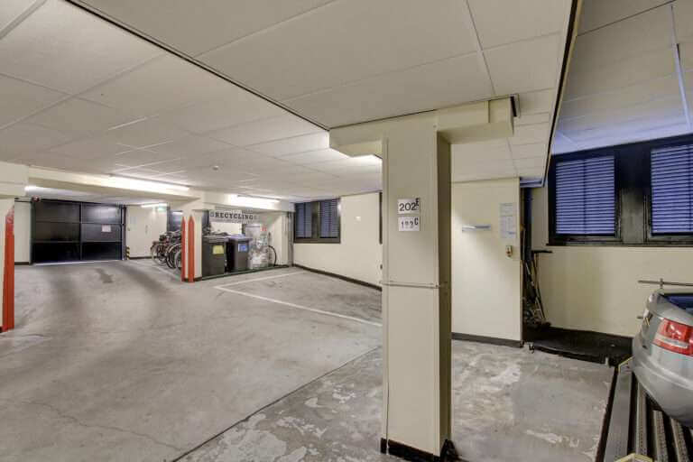 De parkeerplek in de garage is tegen een meerprijs mee te huren.