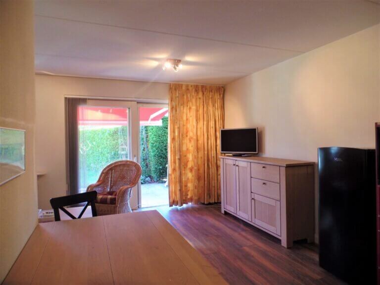 Knusse gemeubileerde 2-kamer woning met heerlijk zonnige privé achtertuin met terras en prachtig uitzicht op de grote goed onderhouden gemeenschappelijke tuin van het appartementencomplex, gelegen in de buurt “Verspreide huizen in het Kleigebied”, in de wijk Wijk 12 Haamstede van de mooie plaats Burgh-Haamstede.