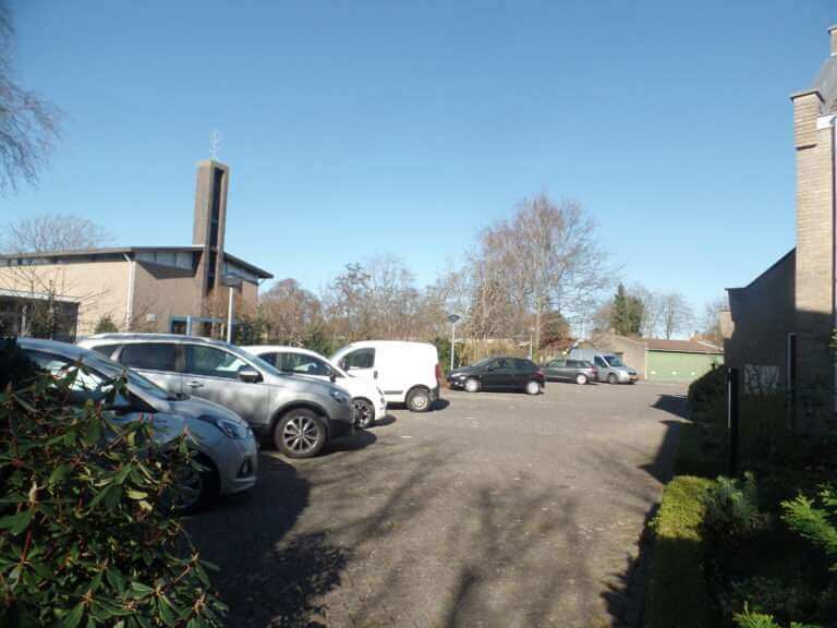 U kunt uw auto parkeren aan de voorzijde van het gebouw open bij het appartement behorende parkeerplaats. Aan de voorzijde van het gebouw bevindt zich tevens een gebouw met de bergingen van de appartementen.
