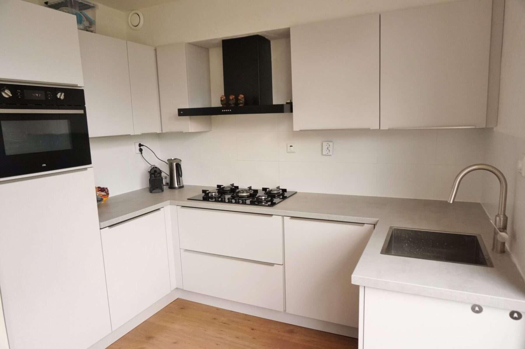 Verder is er een luxe, halfopen moderne keuken met diverse inbouwapparatuur aanwezig zoals een koelkast, 5-pitsgasfornuis, een combimagnetron en een vaatwasser.