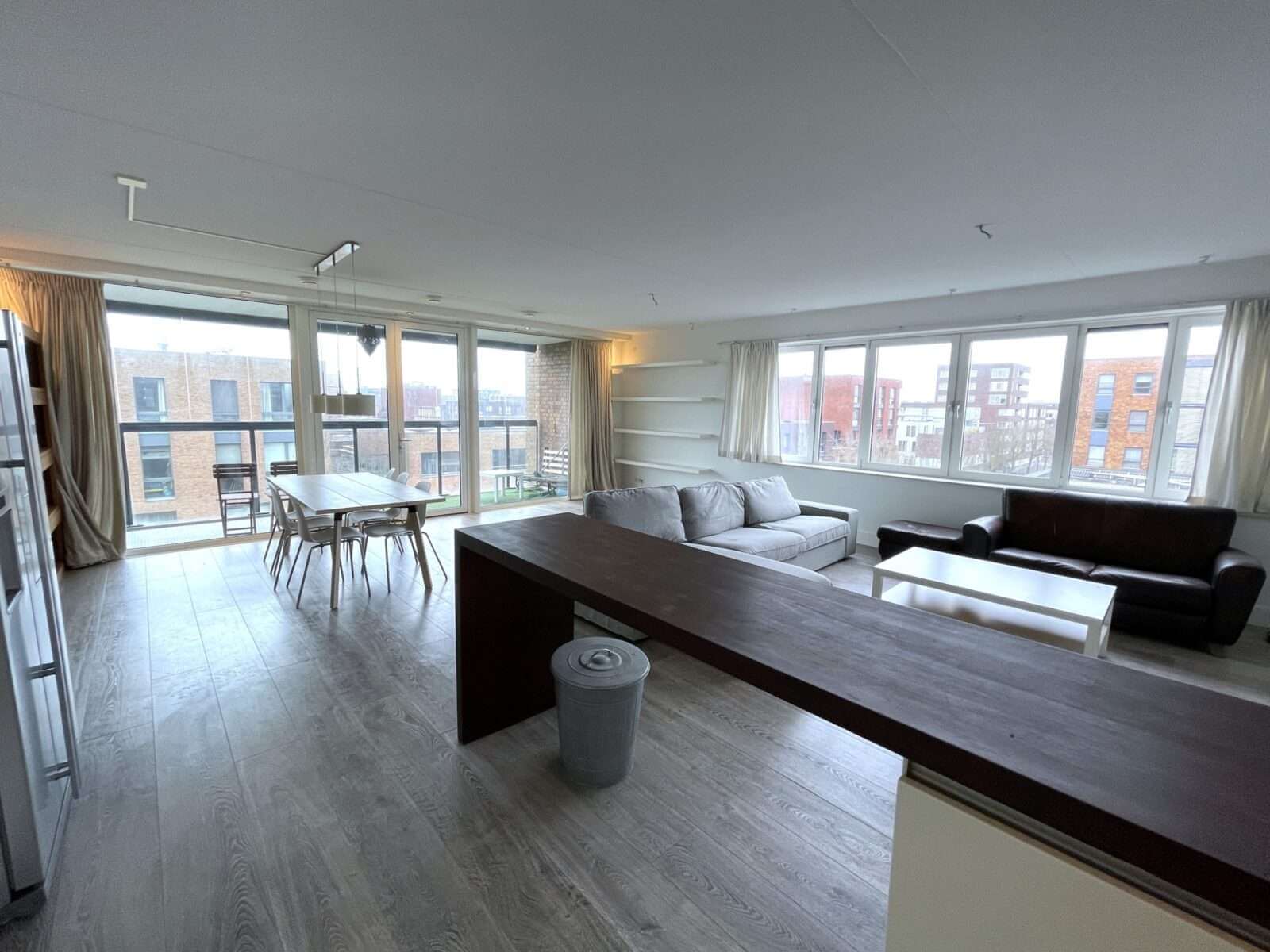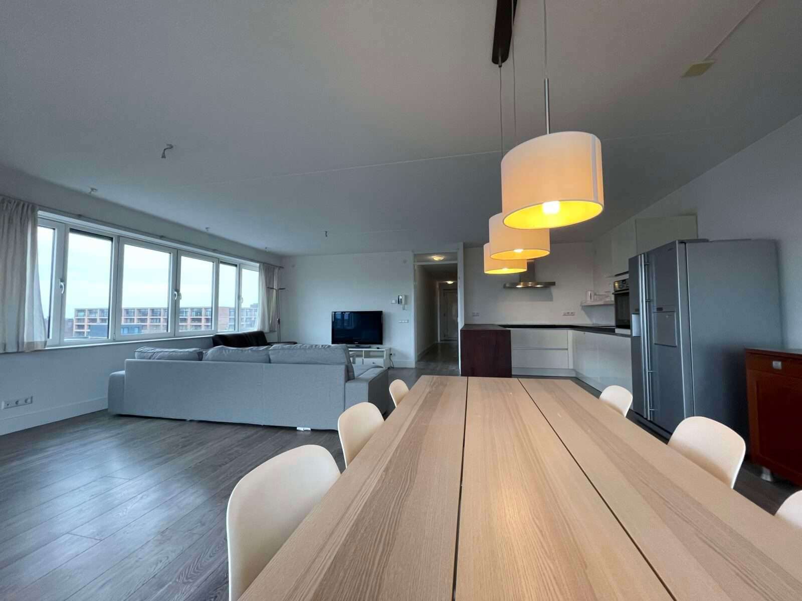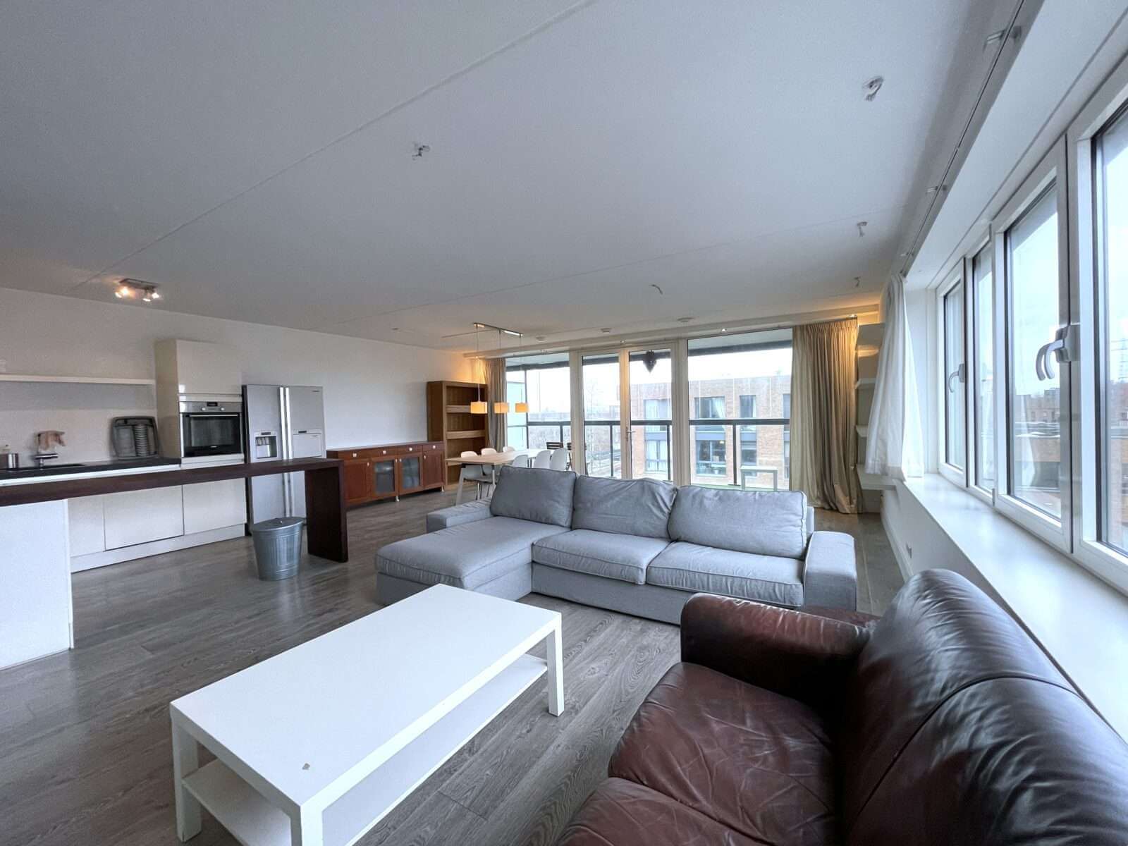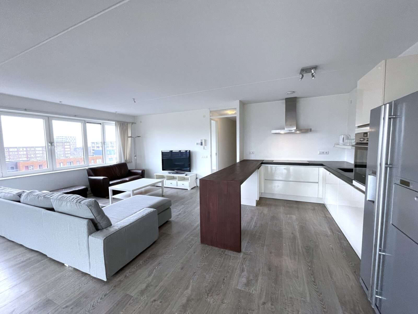 Entree woning, hal met toegang tot alle vertrekken. Zeer ruime woonkamer van ruim 50m² met veel lichtinval en aansluitend een heerlijk balkon van maar liefst 7 meter breed, met de middag/avondzon.