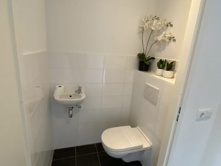 Er is een apart toilet en een berging met de wasmachine in de woning aanwezig.