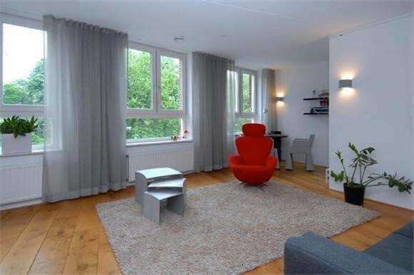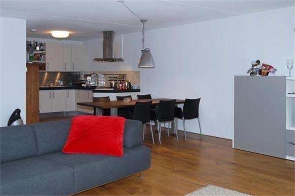 Royale woonkamer (6.53 x 6.39 / 7.20m) gelegen aan de voorzijde van het appartement met mooi uitzicht op het gezellige stadspark “Valkenberg”. De woonkamer is voorzien van een eikenplanken vloer.