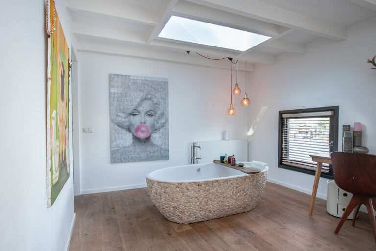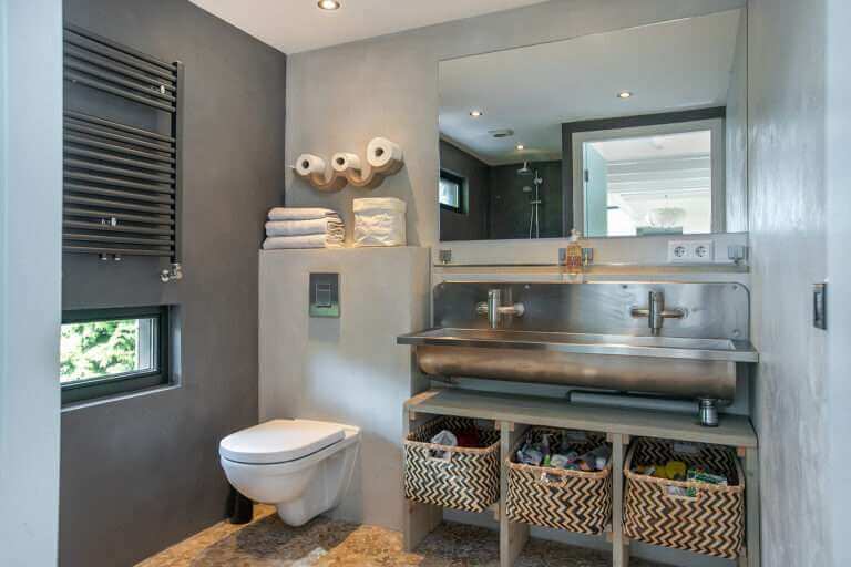 Deze parel heeft maar liefst 4 slaapkamers, 3 toiletten en 2 badkamers. Verder vind je er ook een kelderkamer voor de was en opslag, een open haard binnen en een houthaard buiten voor de na-zomerse nachten.