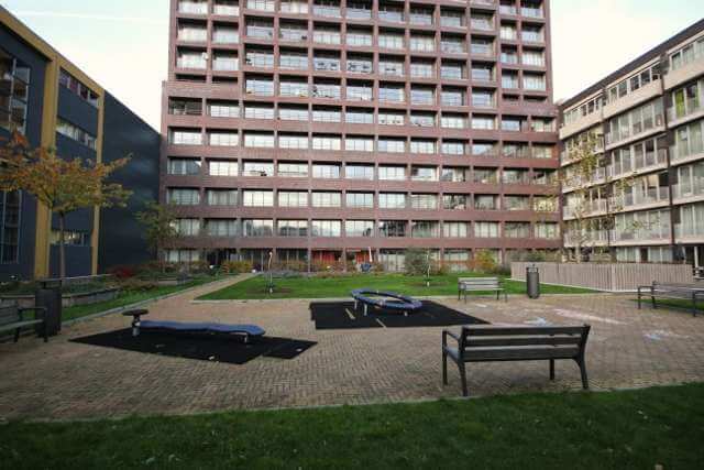 Tuin: het complex is voorzien van een fraai aangelegde afgesloten binnentuin met wandelpaden, bankjes, gras en speeltoestellen voor kinderen.