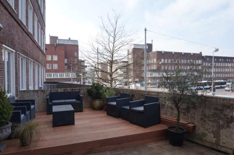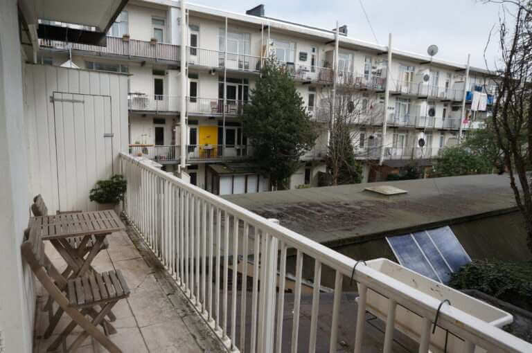 De woning beschikt over een met balkon (oost) grenzend aan de slaapkamers en een groot terras (west) grenzend aan de woonkamer.
