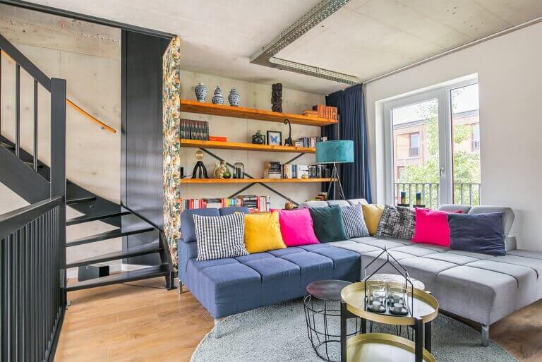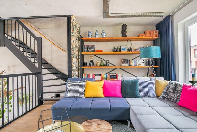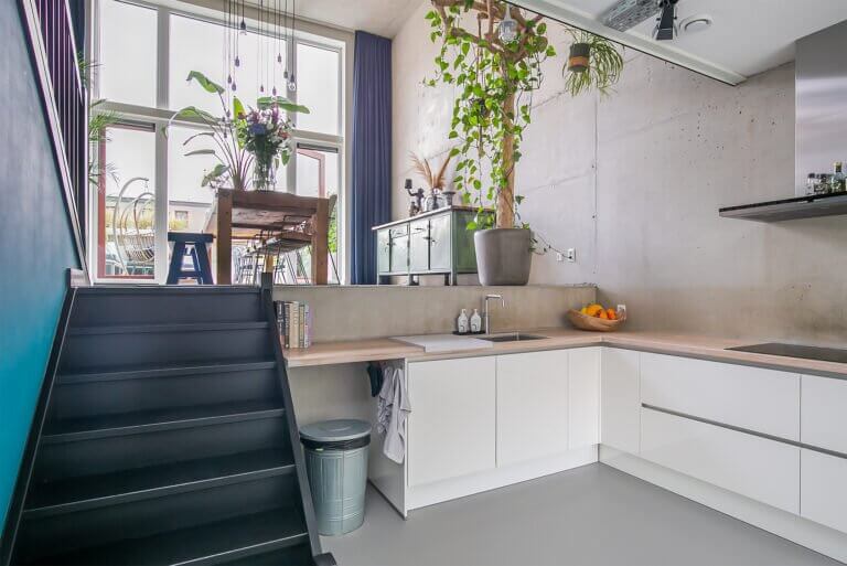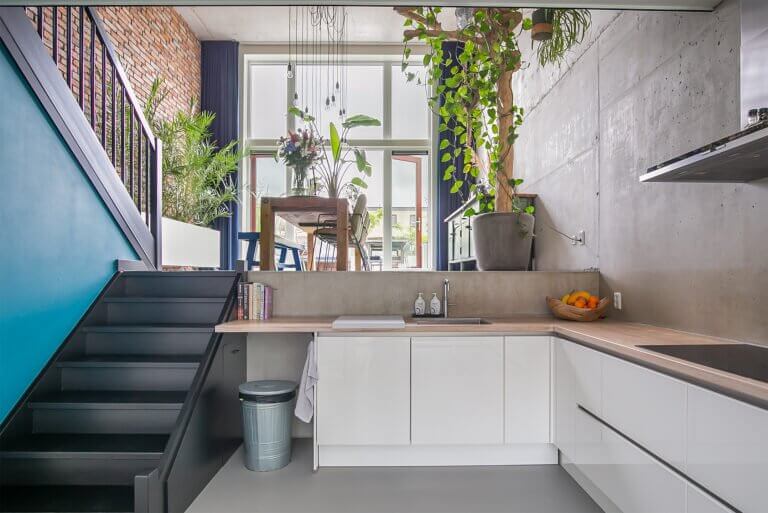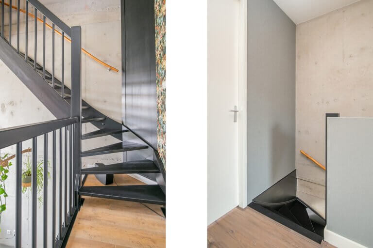 Door de 3 verdiepingen van gelijke oppervlakte, is de ruimte speels en maximaal benut.