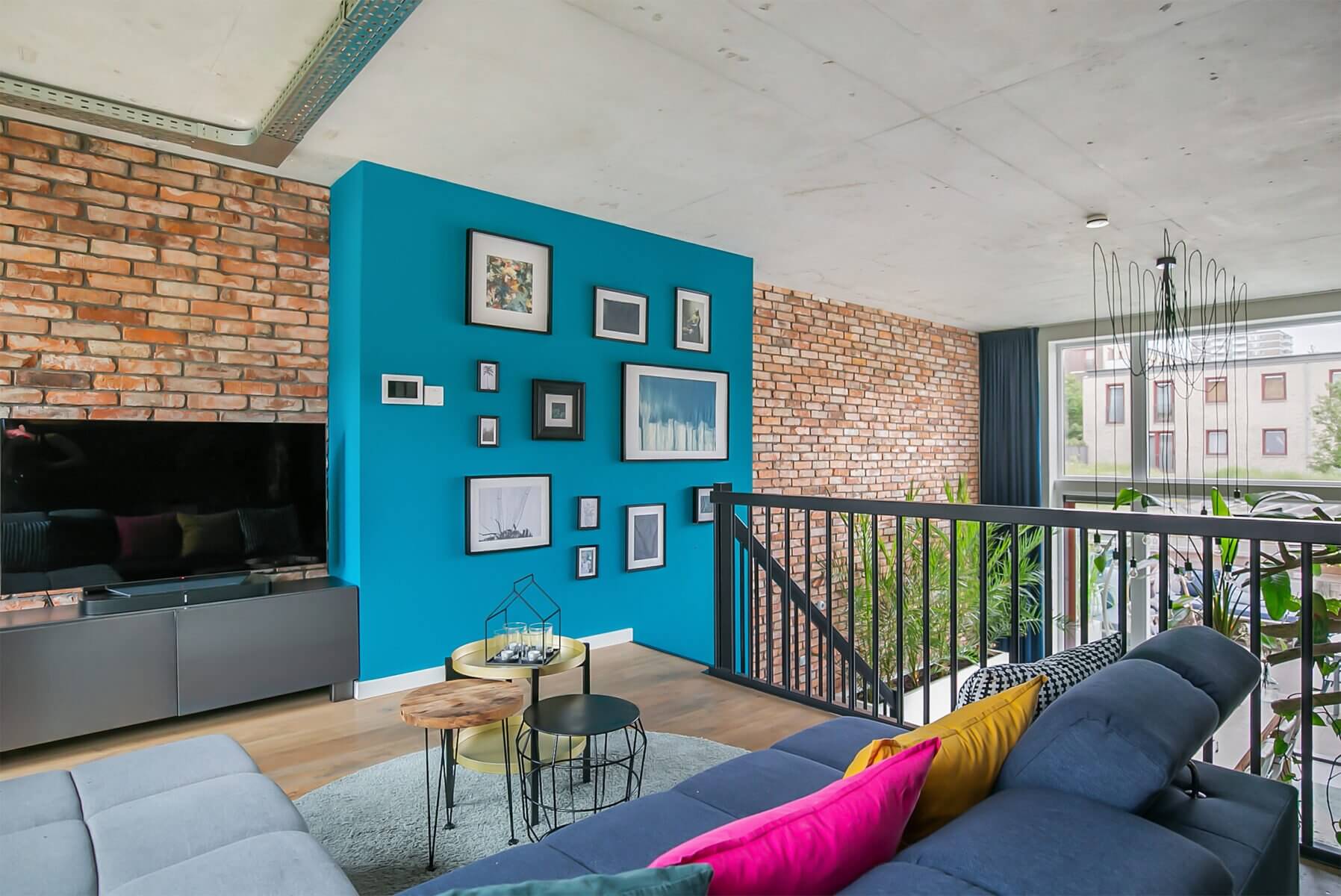 Middels een trap bereikt u de woonkamer, welke gesitueerd is op de 2e verdieping aan de voorkant van de woning.