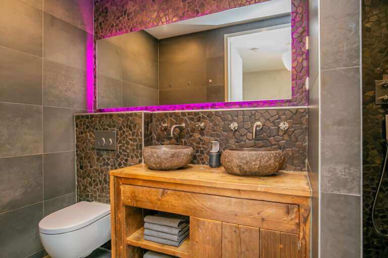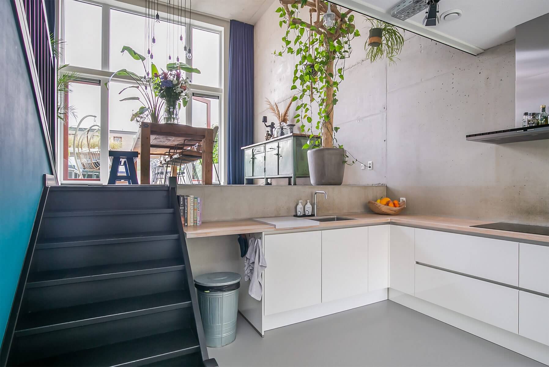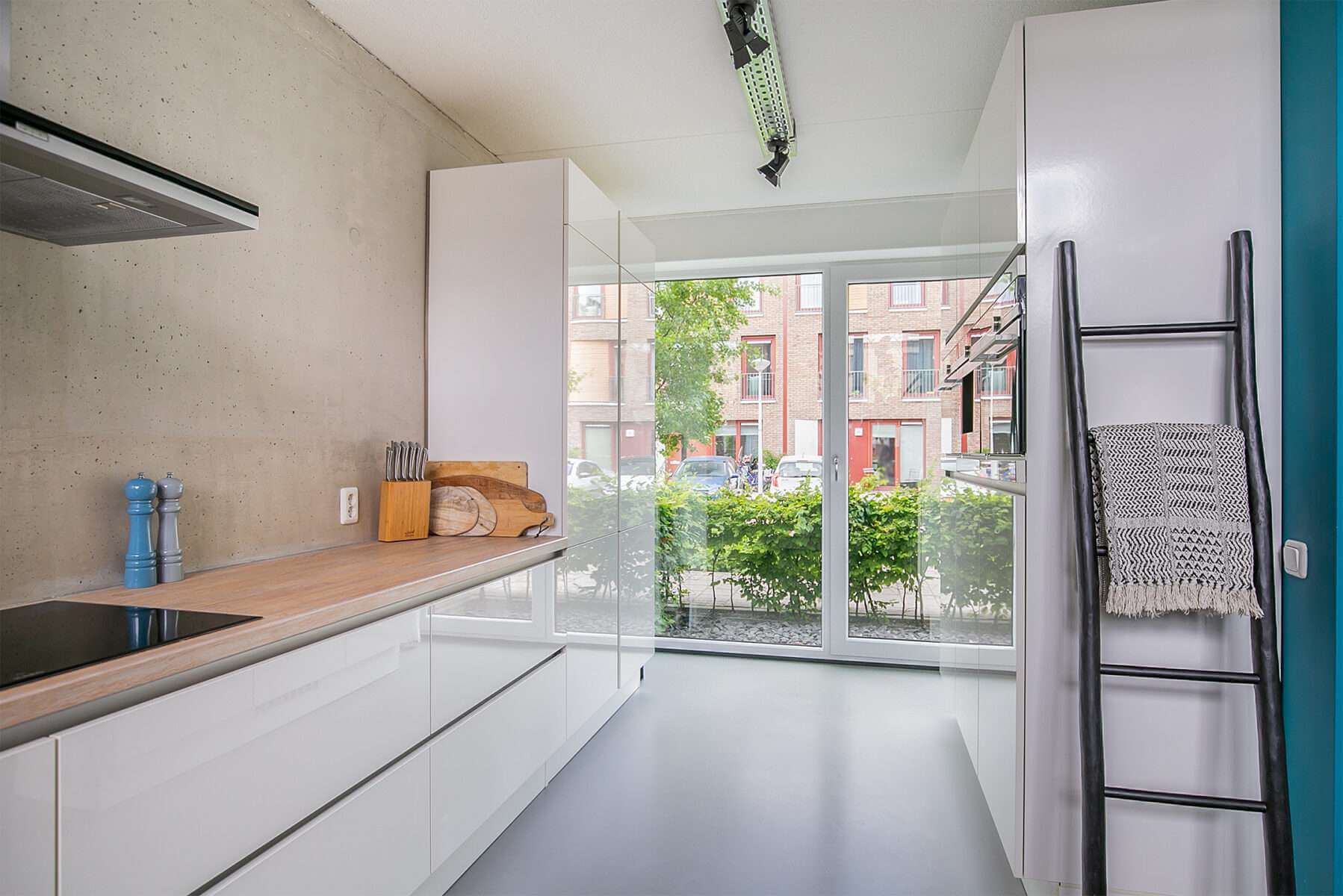 De gietvloer is niet alleen een lust voor het oog, de hierin verwerkte vloerverwarming zorgt ook voor een zeer hoog wooncomfort door de gehele woning.