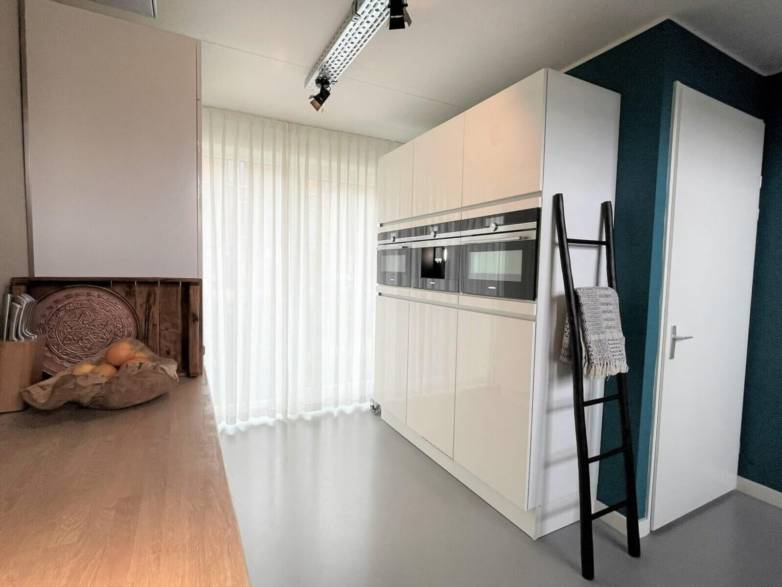 De keuken met grote vriezer en grote koelkast, combi magnetron oven, stoom oven, inbouw koffie automaat, cooker en vaatwasser, is evenals de badkamer op maat gemaakt.