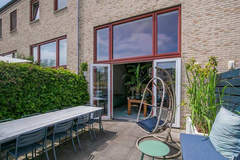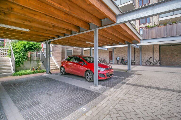 De woning is voorzien van 3 slaapkamer, beschikt over een voor- en achtertuin en een privé berging en privé parkeerplaats op het afgesloten privé terrein achter de woning.