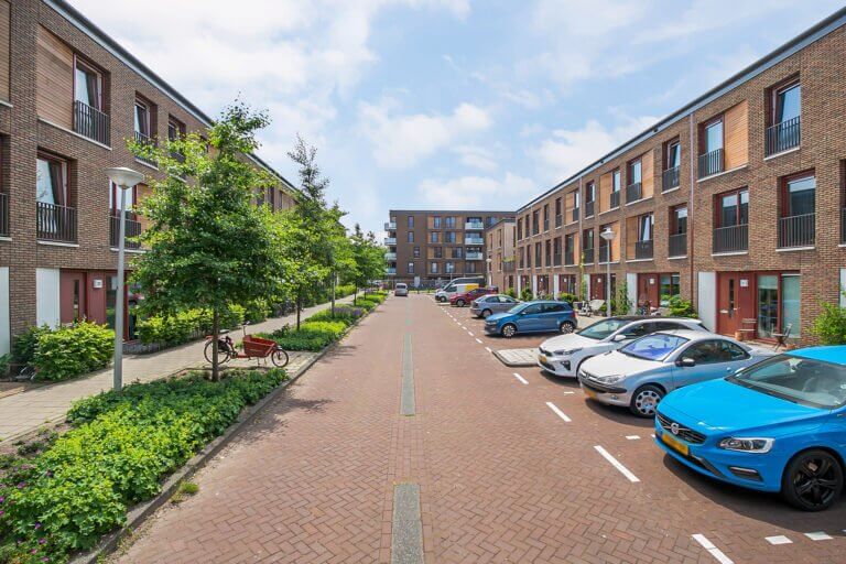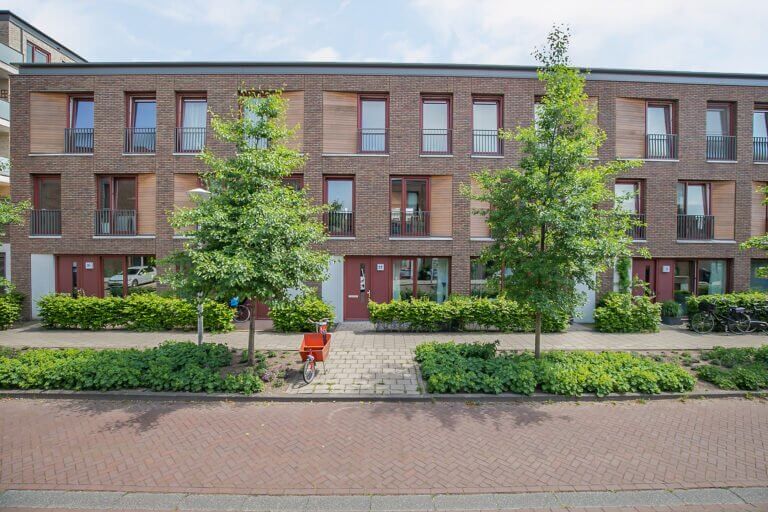 De woning is voorzien van 3 slaapkamer, beschikt over een voor- en achtertuin en een privé berging en privé parkeerplaats op het afgesloten privé terrein achter de woning.