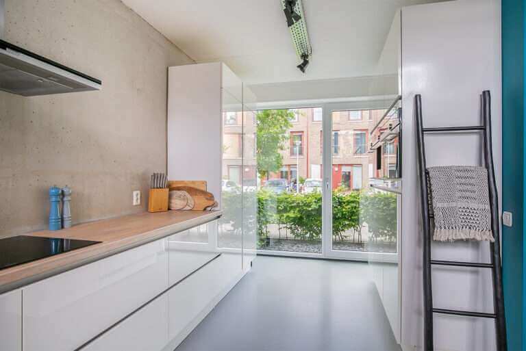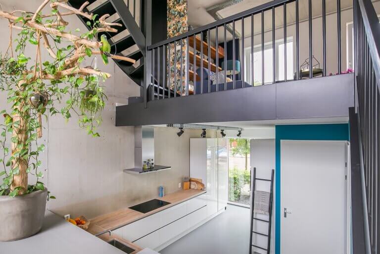 Door de 3 verdiepingen van gelijke oppervlakte, is de ruimte speels en maximaal benut.
