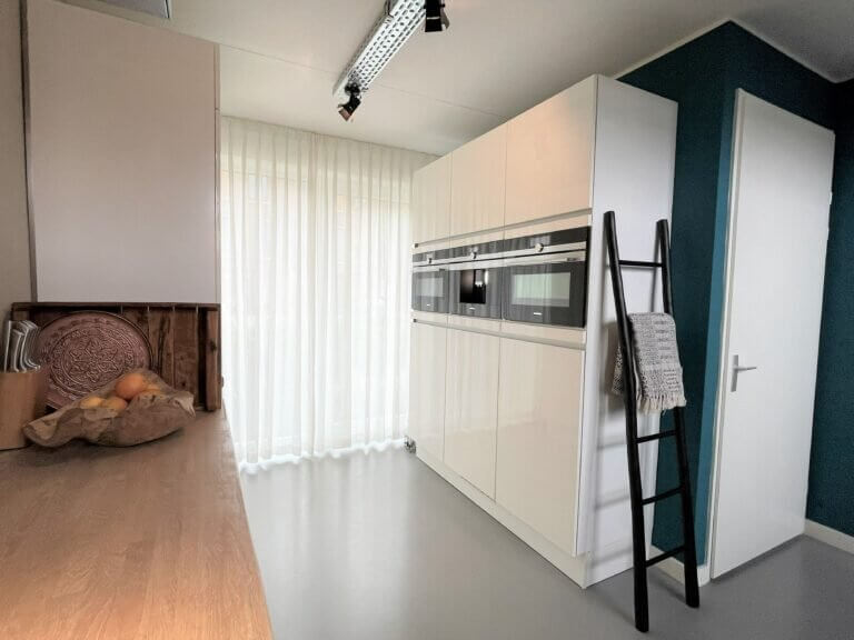 De gietvloer is niet alleen een lust voor het oog, de hierin verwerkte vloerverwarming zorgt ook voor een zeer hoog wooncomfort door de gehele woning.