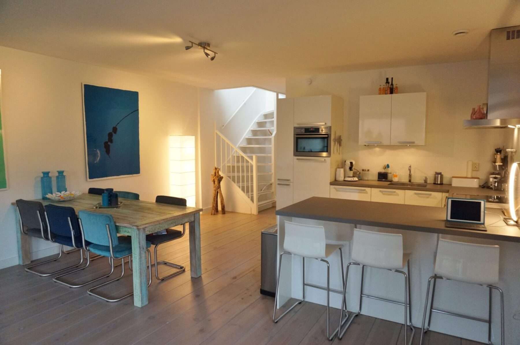 Zo fiets je in bijvoorbeeld circa 7 minuten naar Centraal Station en in circa 10 minuten naar De Jordaan.