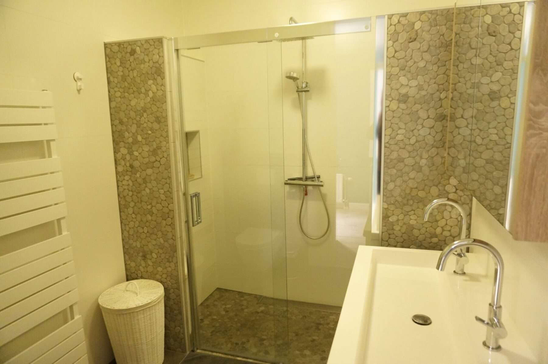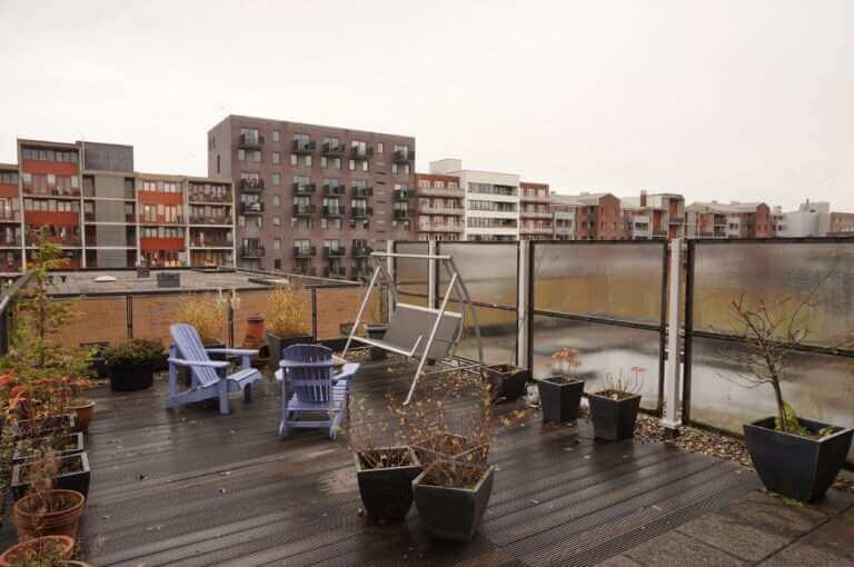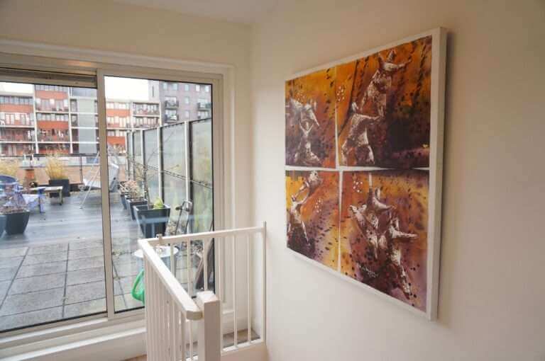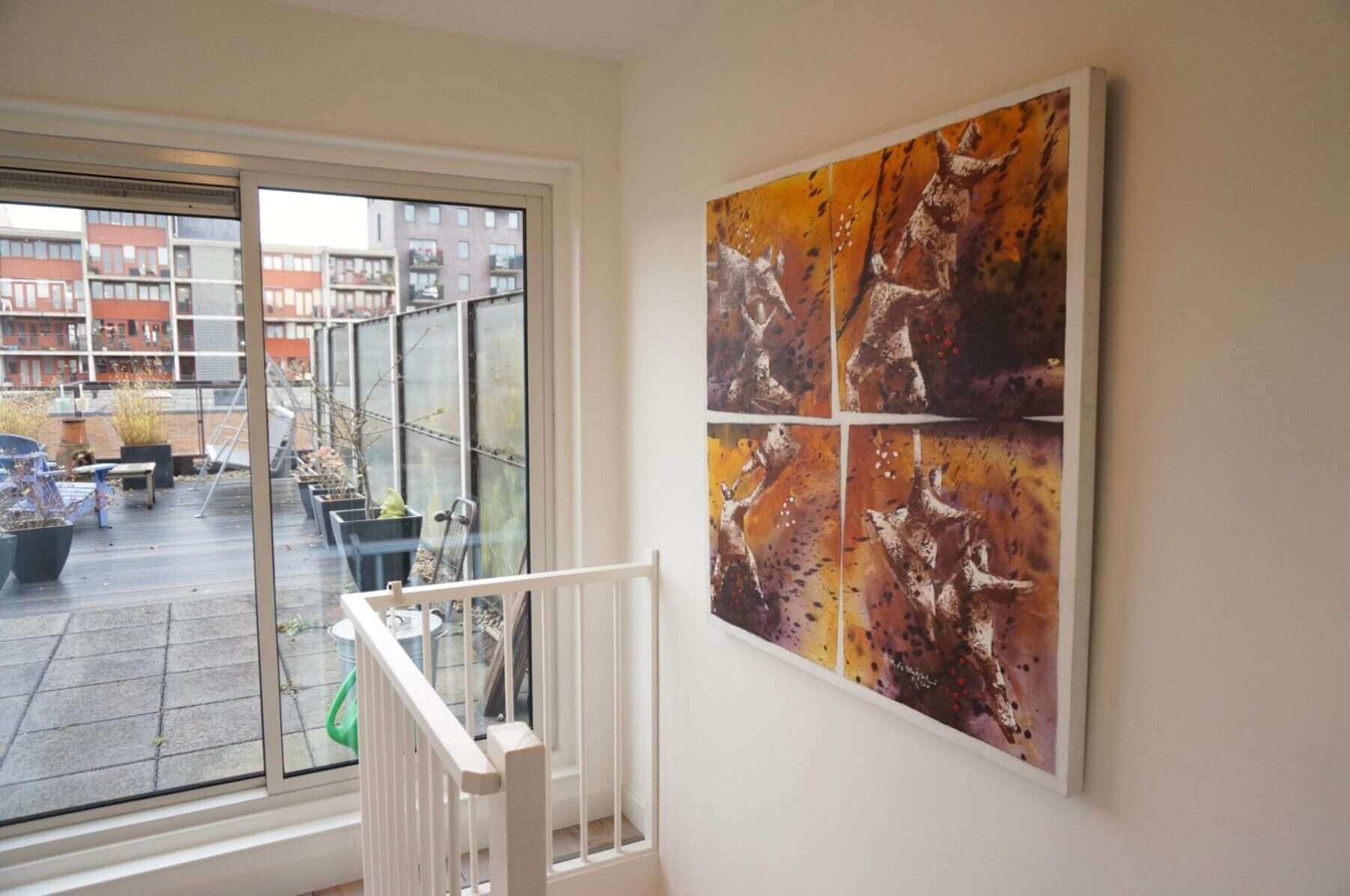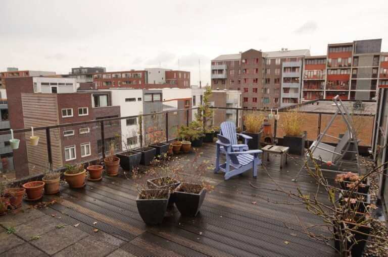 Naast veel lichtinval heeft de woning nog meer goede kenmerken, zoals hoge plafonds (circa 2.65 meter hoog), riant dakterras, 2e gastentoilet, privé parkeerplaats en berging in de garage.