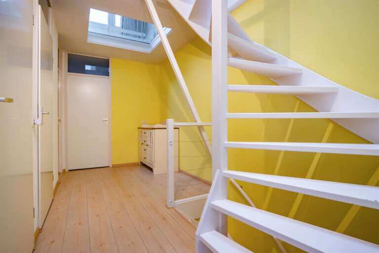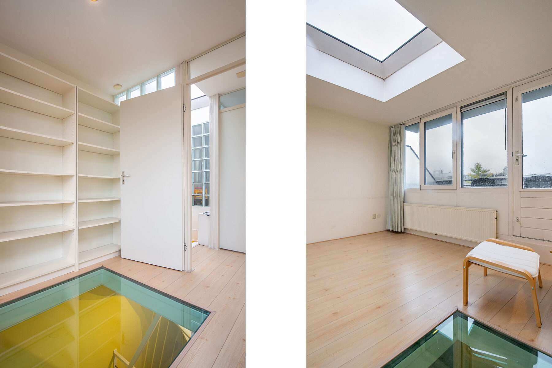 Via een vaste trap bereikt u de tweede verdieping met twee grote kamers. Deze kamers zijn nu in gebruik als kantoorruimte ,maar kunnen uiteraard ook worden gebruikt als slaapkamers. Vanuit iedere kamer heeft u toegang tot een ruim balkon. Deze verdieping is bijzonder verbouwd. Een van de kamers is voorzien van een lichtstraat waardoor in het gehele trappenhuis een prachtige lichtinval hebt. De lichtstraat is overigens zodanig geconstrueerd dat u er gewoon overheen kunt lopen, waardoor deze niets af doet aan het bruikbaar woonoppervlak.