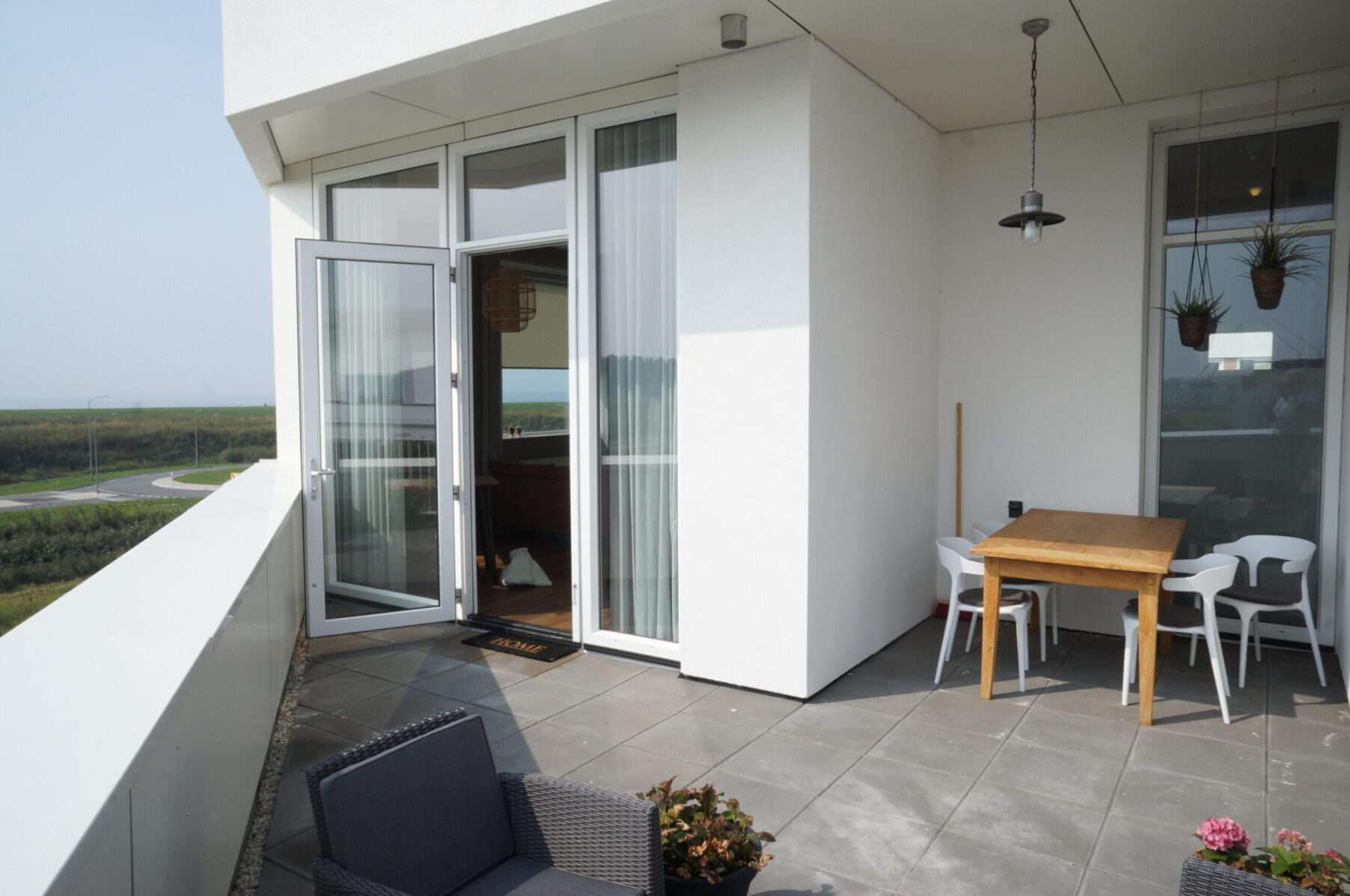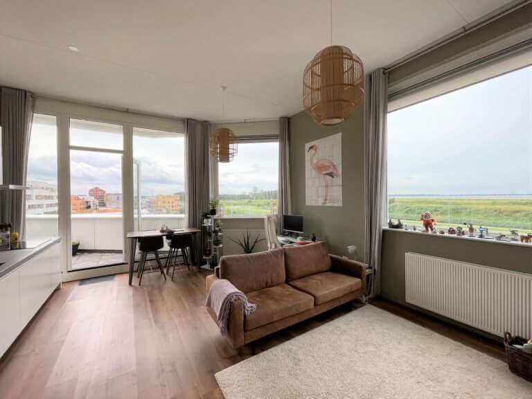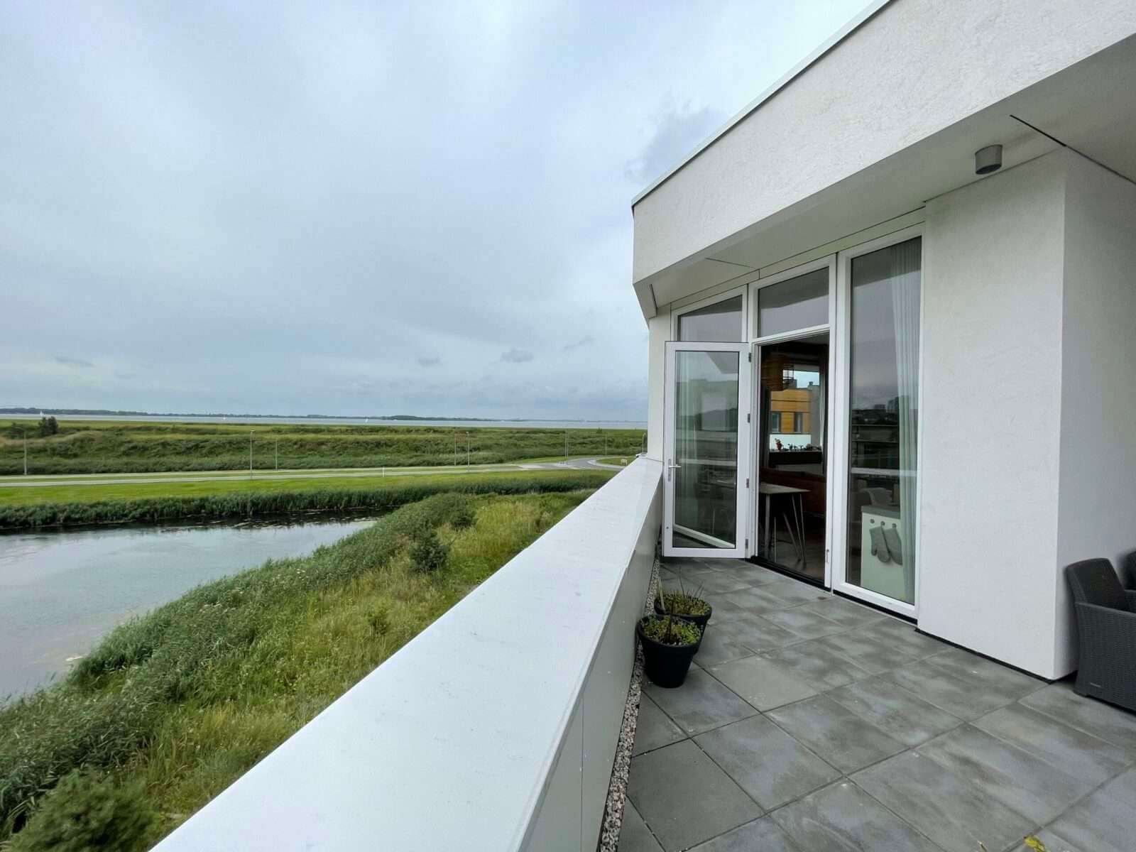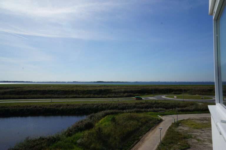 Het penthouse is voorzien van een ruim dakterras (25m2) op het zuiden met prachtig uitzicht over groenvoorzieningen en het IJmeer.