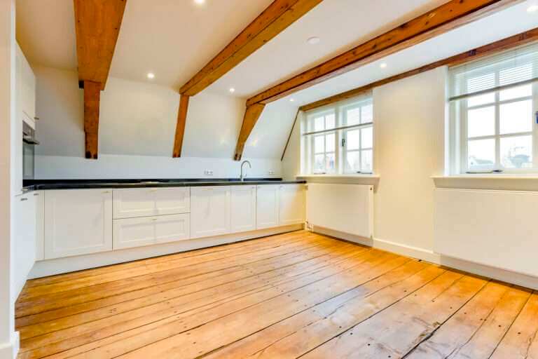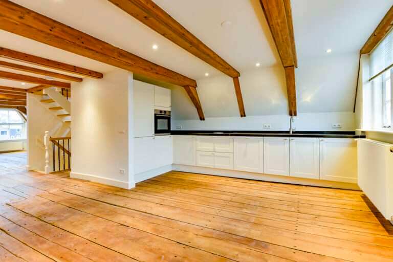 – op dezelfde verdieping bevindt zich tevens de grote woonkeuken aan de achterzijde van het gebouw met prachtig uitzicht over de binnentuin
