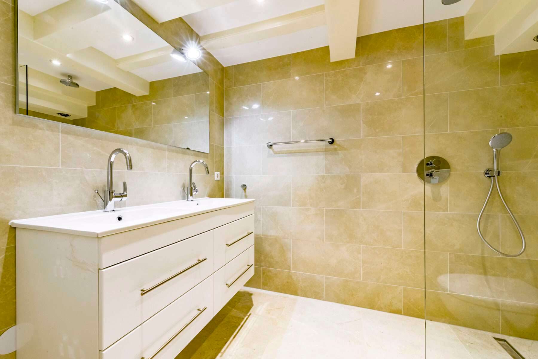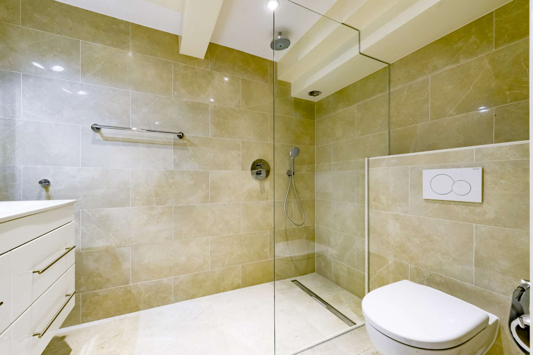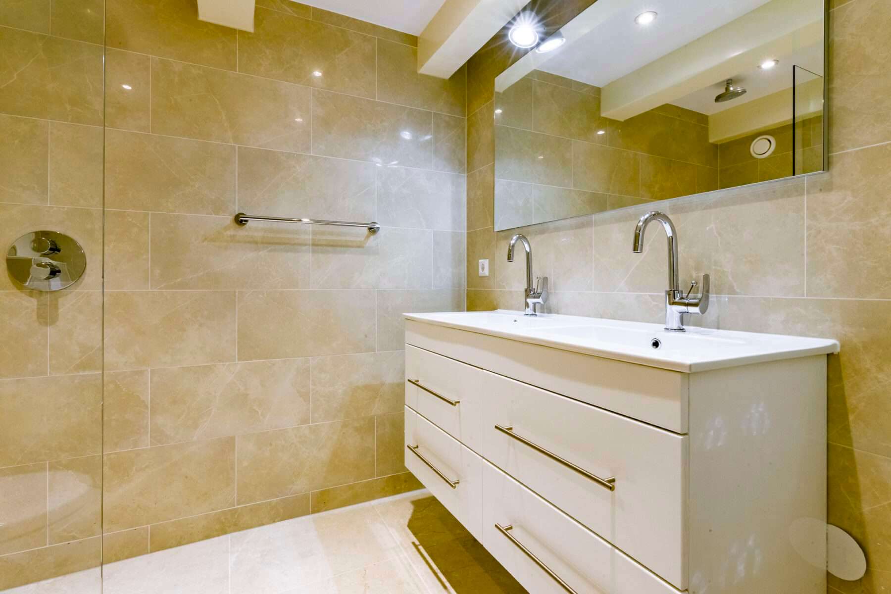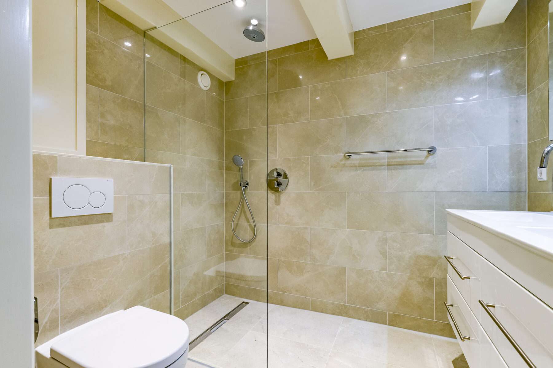 – grote slaapkamer aan de achterzijde met inbouw kasten en ruime badkamer en suite met vloerverwarming